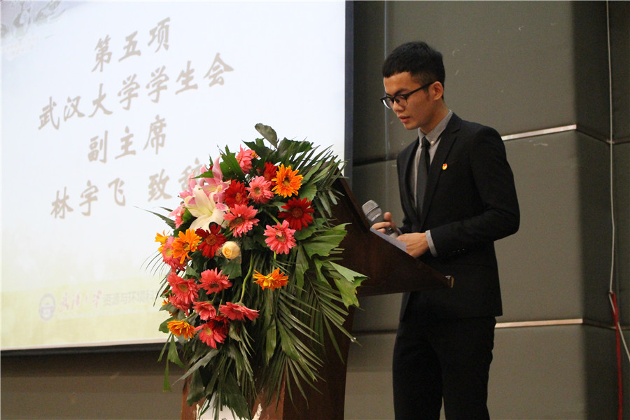 随后武汉大学校学生会副主席林宇飞主席代表作为武汉大学学生会代表作了发言。作为开云官方.中国第十二届分团委学生会主席,他对过去一年资环学生会取得的成绩表示了诚挚的祝贺,并对资环学生会的进一步工作提出了殷切期盼与衷心祝福。