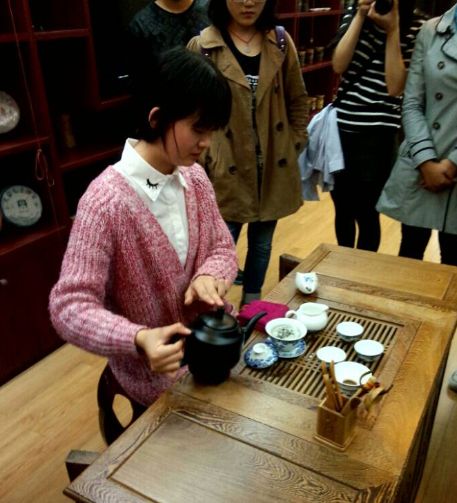 我院研究生们观看湖北经济学院学生代表的茶艺表演