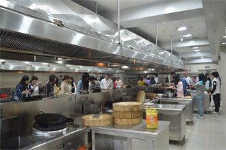 我院研究生们与素质班成员在五味轩师傅们的带领下一起合作烹饪美食