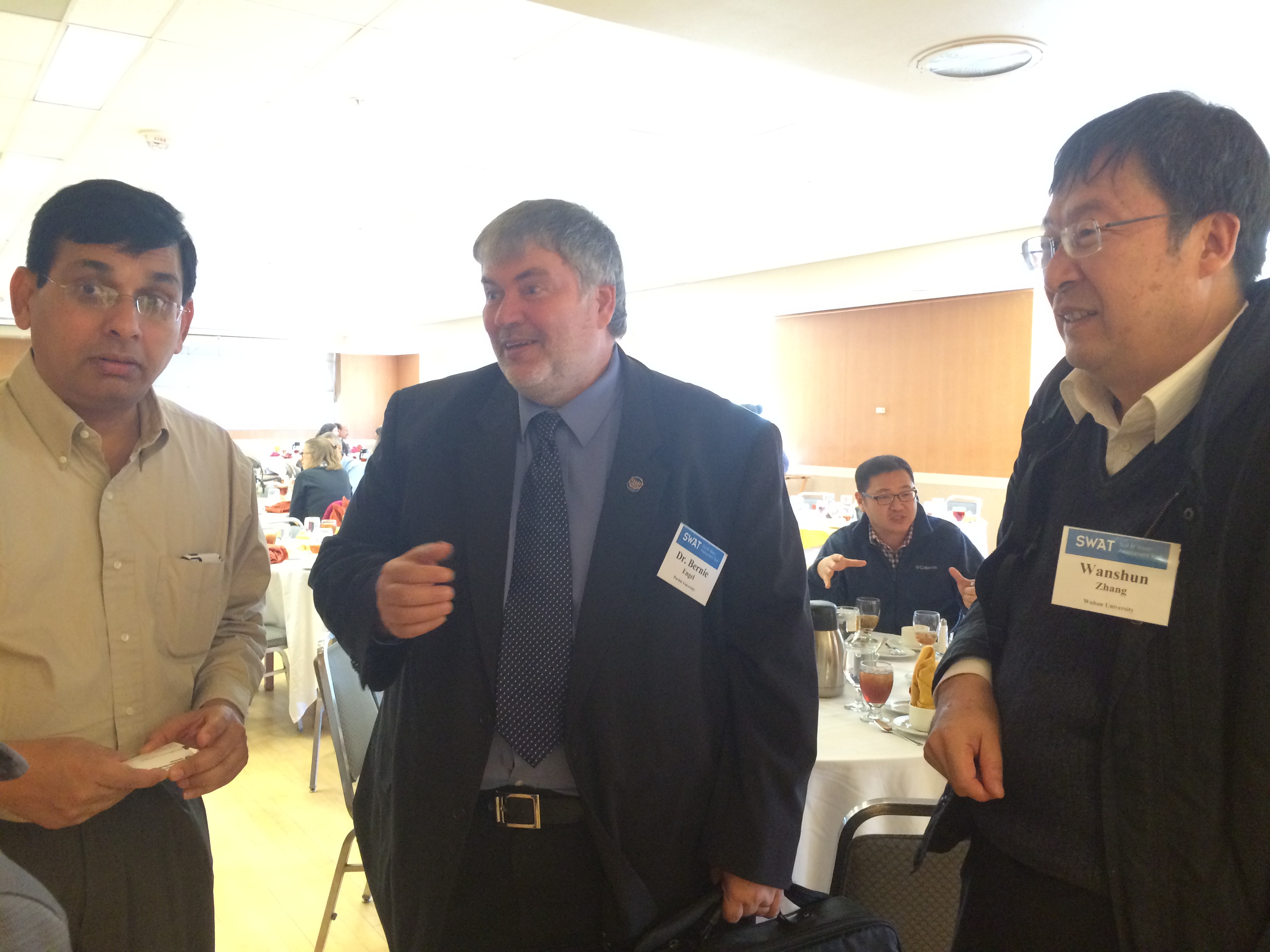 SWAT模型是享誉世界被广泛应用的分布式流域水文模型,具有模拟水文过程、土壤侵蚀、泥沙冲淤等多种功能,其完备的理论体系一直是水文领域国内外研究和应用的热点与重点。普渡大学是世界著名的、综合实力排名在全世界前50位的大学,普渡大学工程学院是全球最顶尖的的工程学院之一,其农业与生物工程系(ABE)以研究生物工程、环境工程和农业工程为主,其研究生项目综合实力排名连续六年来为全美ABE的第一位。普渡大学是SWAT模型发源地,SWAT创始人Jeffrey G. Arnold等均出自普渡大学ABE教授Dr. Bernard Engel门下。2015年普渡大学举办的SWAT国际会议,既是一次关于SWAT的国际性成果交流;也是历经25年后,SWAT重返普渡的庆典。在会议上,来自中国、美国、欧洲、非洲等国家和地区的优秀学者汇集一堂,交流共享成果、共同探讨与规划SWAT未来的发展之路。