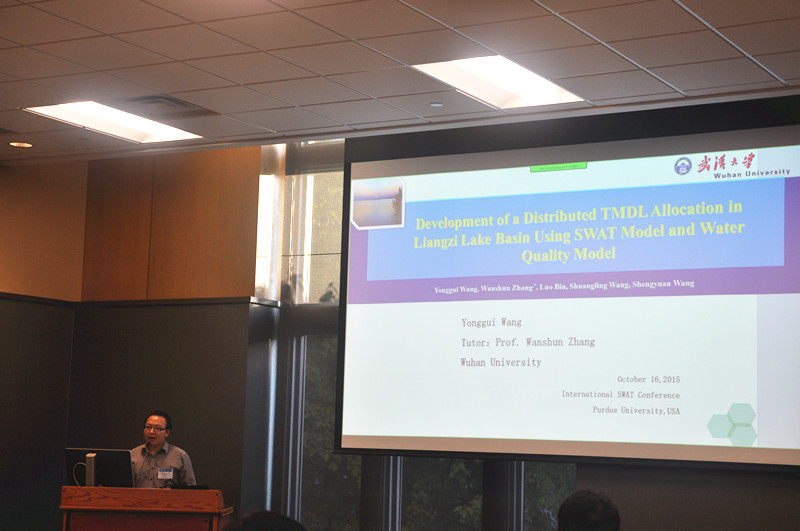 2015年10月14日-16日,2015年国际SWAT会议(The 2015 International SWAT conference)在美国普渡大学举行。本届SWAT会议吸引来自10个国家的140名学者参与。应美国普渡大学农业与生物工程系(Agricultural & Biological Engineering, Purdue University)系主任Dr. Bernard Engel邀请,我院张万顺教授携课题组师生5人参加了此次大会,并以口头报告的形式系统展示了课题组在三峡、梁子湖等流域应用SWAT模型的创新成果,受到与会学者的关注和好评。会上,张万顺教授与SWAT创始人Jeffrey G. Arnold等学者就SWAT模型在中国的应用和发展进行了交流,Jeffrey G. Arnold等学者期待在2016年的SWAT国际会议上能与课题组再次交流,课题组能进一步分享SWAT研究的创新成果。