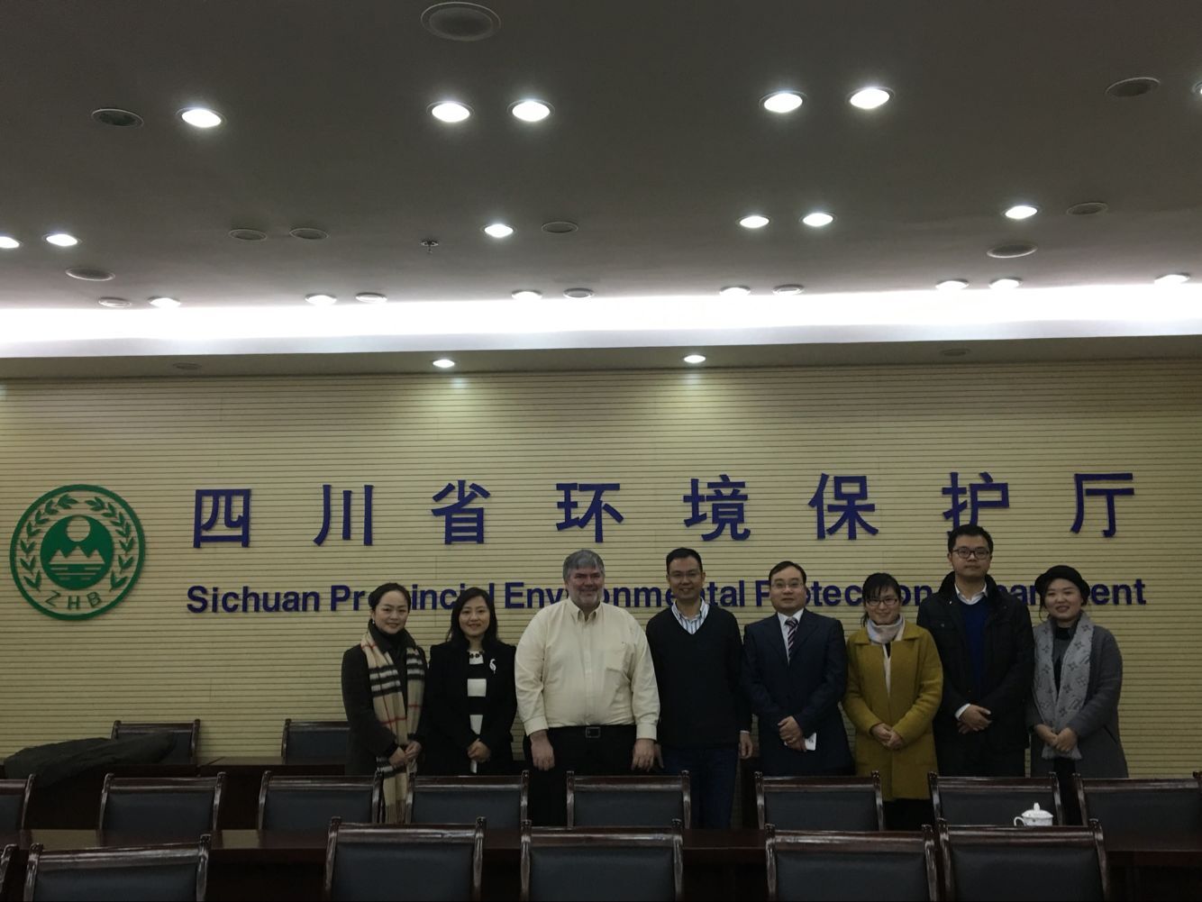 Bernard Engel教授同四川省环保厅李岳东副厅长、重庆市环科院张卫东副院长、长江水利委员会水文局徐高洪处长进行了交谈,就如何打破技术郅楛,将目前最先进流域仿真技术应用在我国非点源污染控制及水环境风险评估、最佳流域管理措施(BMPS)以及低影响开发理念等方面,开展了深入细致地讨论。双方认同将资源消耗、环境损害、生态效益三方面纳入三峡库区所覆盖区域经济社会发展评价体系,是促进三峡库区环境、生态、经济效益持续发展的有效手段。