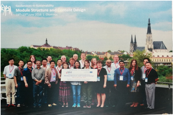 GeoS4S项目是由欧亚6个国家的10个院校组成的国际联合教育项目,主持单位为奥地利的University of Salzburg,参加单位有捷克共和国的Palacky University Olomouc、德国的Eberwalde University of Sustainable Development、荷兰的Free University of Amsterdam,中国的武汉大学、南京师范大学、中国科学院新疆生态与地理研究所、以及泰国的Asian Institute of Technology、Chiang Mai University和King Mongkut’s University of Technology Thonburi等。该项目建设周期为三年,以培养具有先进专业知识和技术能力的国际型专业人才为目标,为适应社会及就业市场快速变化的需求,项目以地理空间数据、技术及应用为驱动力,采用Add-on和Plug-in方式设计和开发20个相对独立且不需要预备知识的课程模块,课程模块面向硕士生,学生可根据自身情况及市场需求自由灵活的选择课程。课程模块采用基于问题的教学和基于案例研究的学习相结合的方法,以及倒转课堂与主动学习的方式,课程模块的设计便于学生掌握专业前沿知识和技术能力。