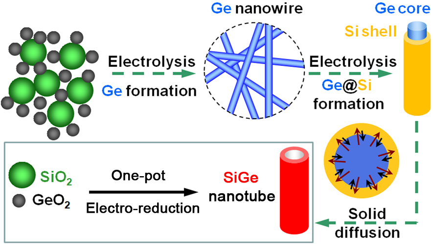武汉大学汪的华教授团队在纳米空心材料的熔盐电解可控制备的研究方面取得重要进展,相关研究成果以“Electrolytic Formation of Crystalline Silicon/Germanium Alloy Nanotubes and Hollow Particles with Enhanced Lithium-Storage Properties”为题于5月12日在国际顶尖化学期刊《Angewandte Chemie International Edition》上在线发表(SCI影响因子11.261),论文链接:http://onlinelibrary.wiley.com/doi/10.1002/anie.201602653/full。论文第一作者为肖巍博士。
