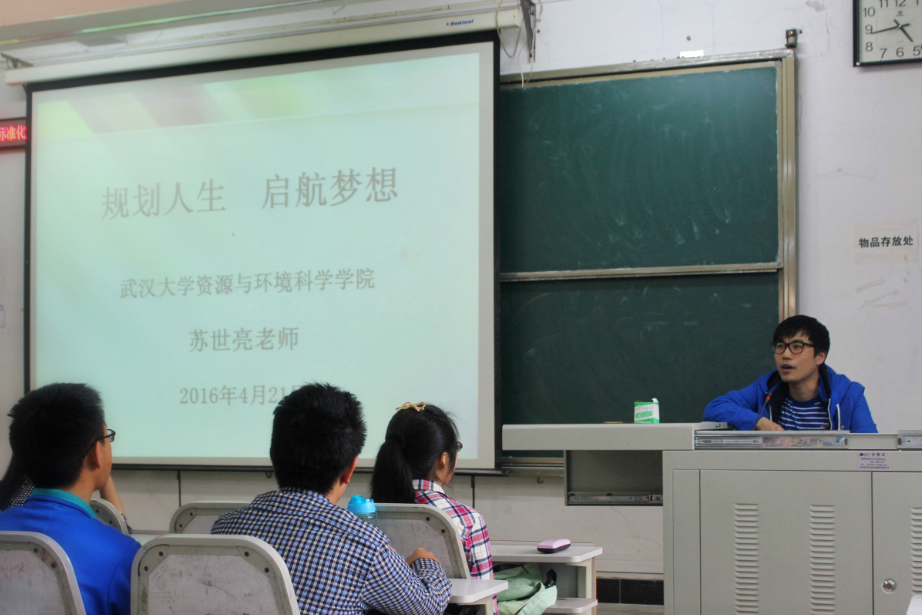 大三,对于一个本科生来说,是大学四年里很关键的一年,它既充满着拼搏与希望,也弥漫着迷茫和未知。为了让学生们更好地了解未来的专业发展,规划好自己的人生之路,资环院2013级辅导员马丽华老师组织了专场讲座,邀请了我院地信专业青年教师,同时也是我院04级优秀本科生——苏世亮老师来给同学们分享他的求学经历。讲座于4月21日下午4:40在信息学部主教328教室正式开始,台下坐满了2013级地信专业的学生,同时也有其他专业、其他年级的学生慕名而来。