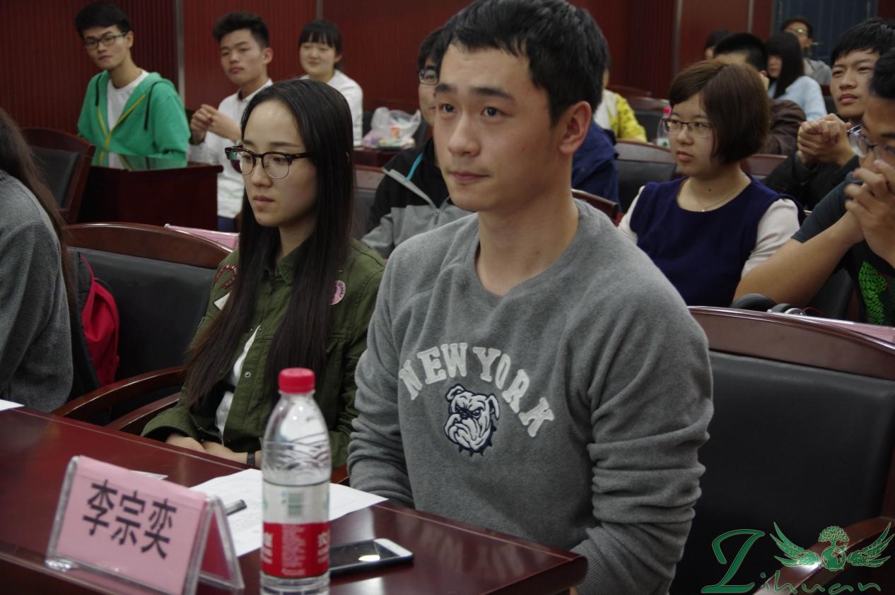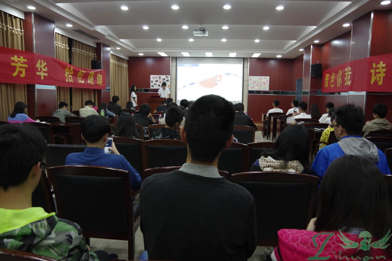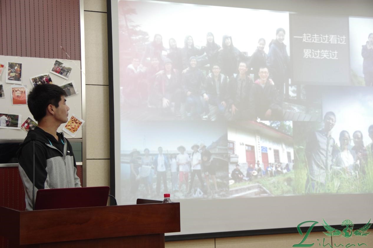 其次为武汉大学神农架科研考察队队长钱林钧学长发言。学长讲述了神农架科考队的发展史,“科考活动由1999年开始,14年因胡鸿兴教授去世而暂停,15年又重启。”由于是薪火传承的一届,考察队责任重大,而成果也颇为丰富。“神农架的美丽深深震撼了我们。”在展示考察过程时,钱林钧学长感叹道,“爱科学,爱自然,爱生活是我们的宗旨,我们也会继续走下去。”最后,学长发出倡议:“2016,让我们一起为绿色自然努力。”