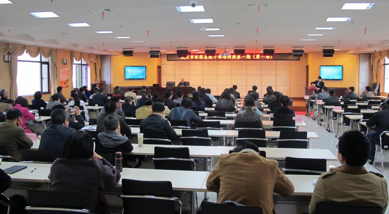 此次培训班是根据武汉市环保局推进生态文明建设及绿色发展理念和着力提高市环保系统干部思想理论素质的要求,我院结合武汉大学相关学科优势,为其量身定做的环保系统干部培训,培训主要包括宏观经济形势、环境法律法规解读、环境行政管理形势、环境新技术和干部管理能力提升等。首场报告由武汉大学区域研究中心主任、博士生导师伍新木教授作了题为《宏观经济形势与长江经济带发展解读》的专题讲座。