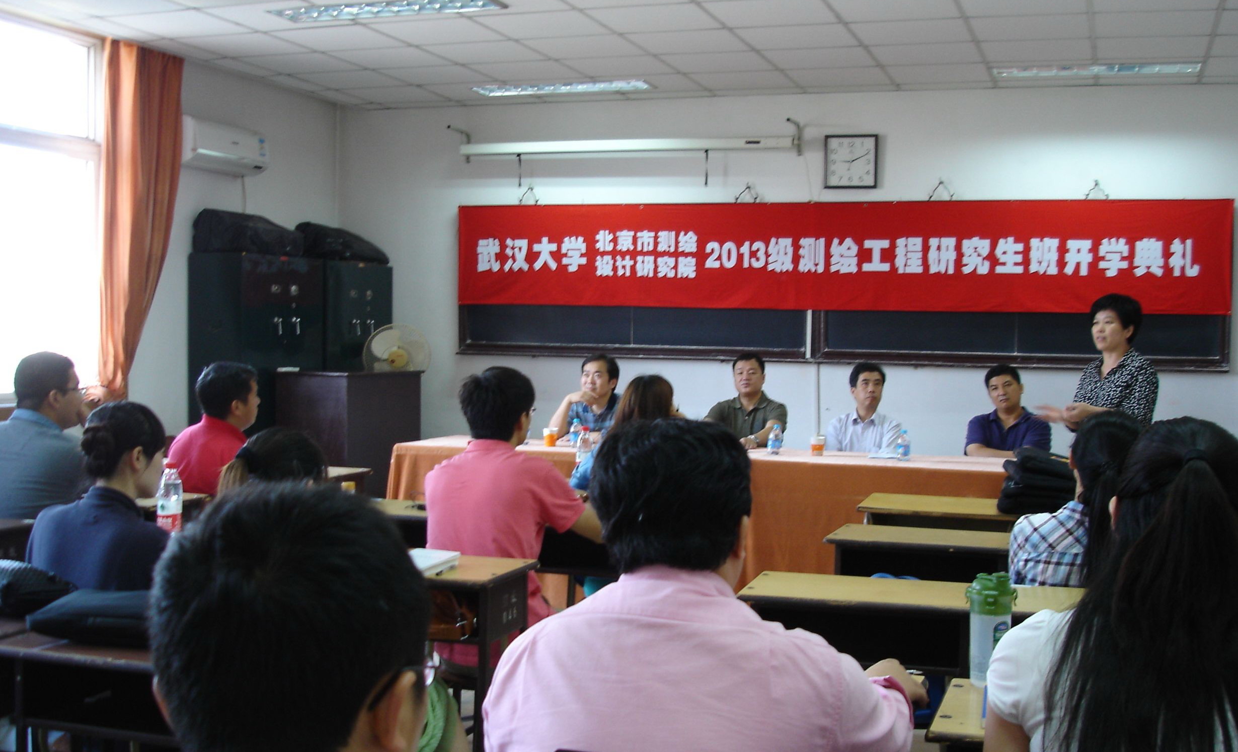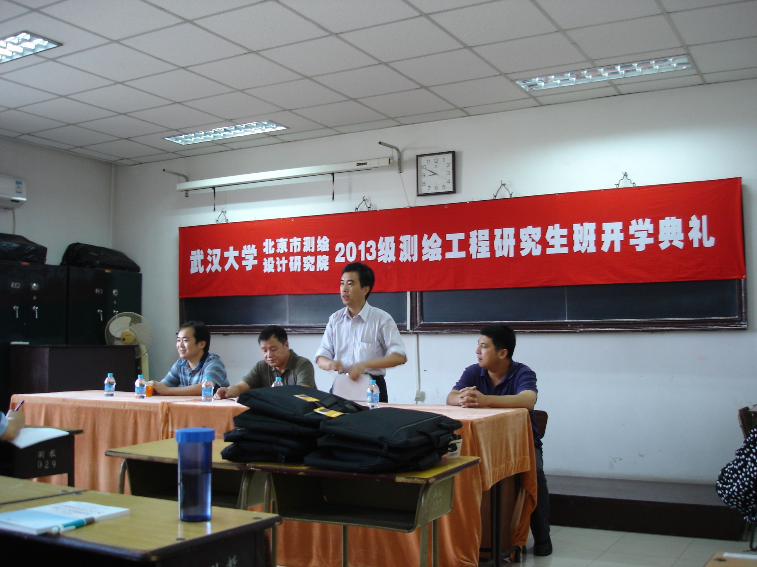 北京市测绘设计研究院人事教育处贾光军处长就北京市测绘设计研究院函授站与武汉大学办学的历史、发展过程向学员们做了介绍,先后办了地理信息系统、土地管理与地籍测量等专科、专升本的函授继续教育,为北京甚至华北培养大量测绘地理信息人才;现在提升合作办学层次,举办测绘工程硕士合作办学,对于广大测绘地理信息工作来说是一个提升自己的好机会;要求学员珍惜学习机会,认真学习取得好成绩。