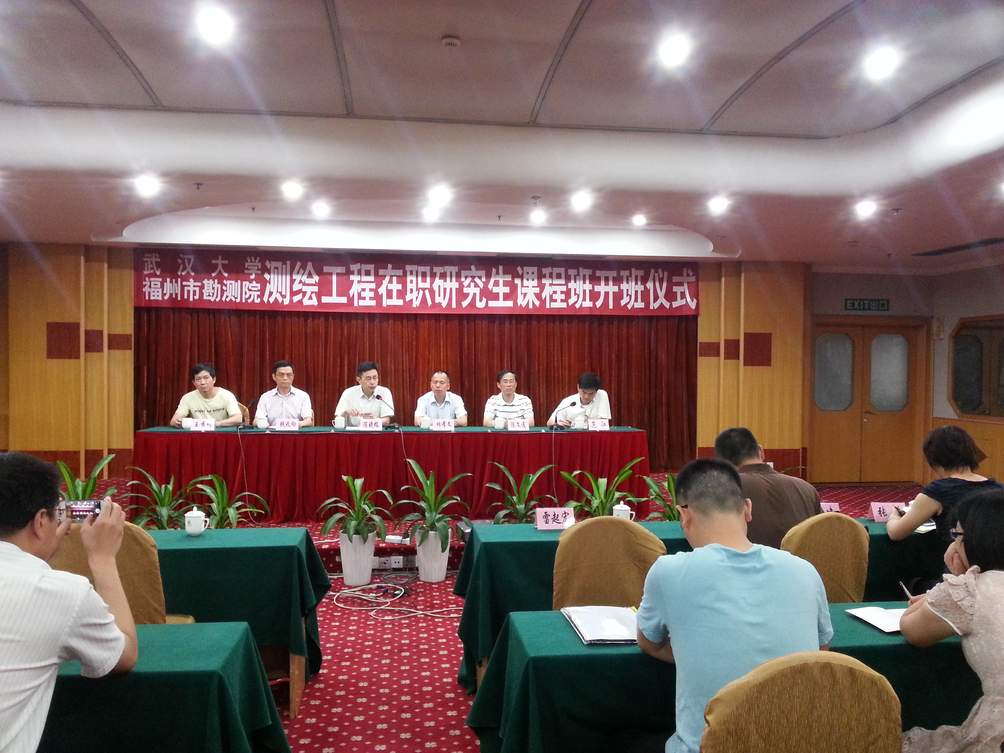 福州市勘测院院长钱兆向介绍了福州市勘测院的基本情况和发展思路,认为与武汉大学合作办测绘工程研究生班的意义重大,能促进勘测院的技术升级和人才培养,切实解决工作中遇到的工作问题。邱健丽学员代表全体30多位学员发言,表示将合理安排工作和学习时间,认真学习,结合实际探讨问题,争取早日拿到硕士学位。