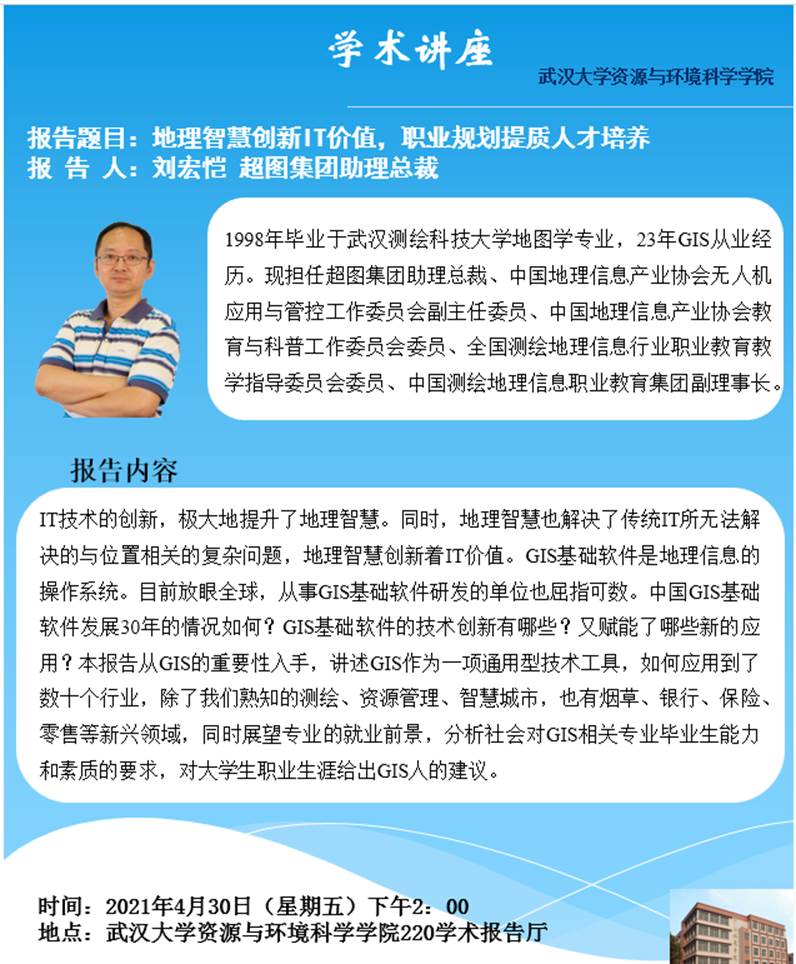 4月30日下午超图集团助理总裁刘宏恺:地理智慧创新IT价值,职业规划提质人才培养