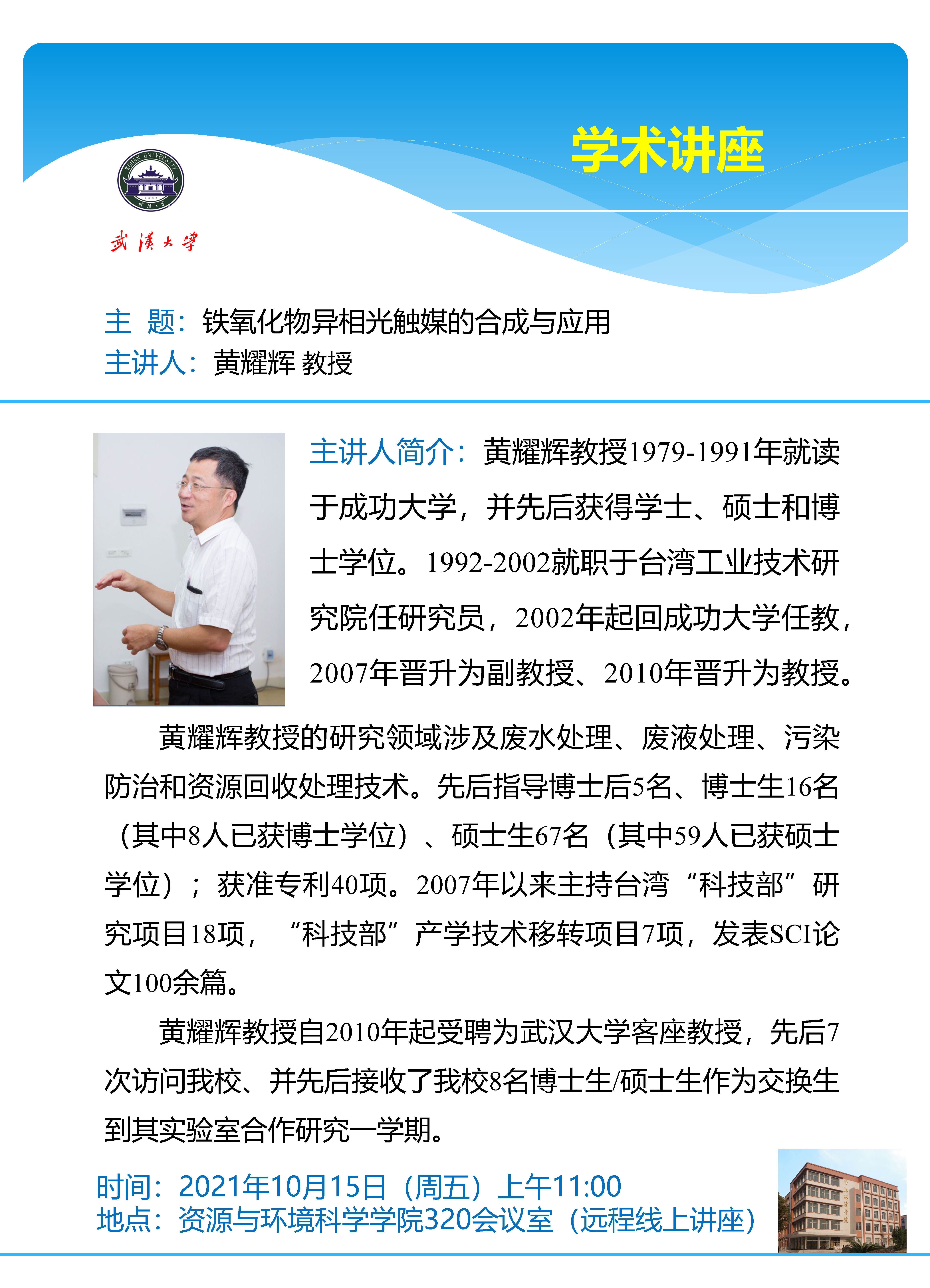 10月15日上午成功大学黄耀辉:铁氧化物异相光触媒的合成与应用