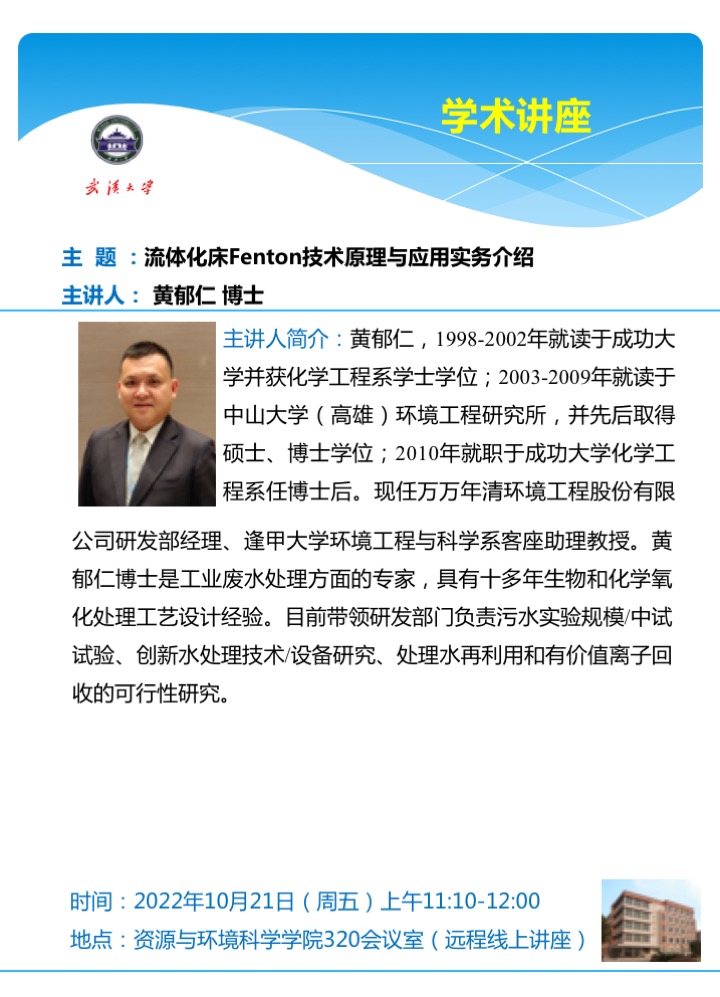 【学术讲座】流体化床Fenton技术原理与应用实务介绍