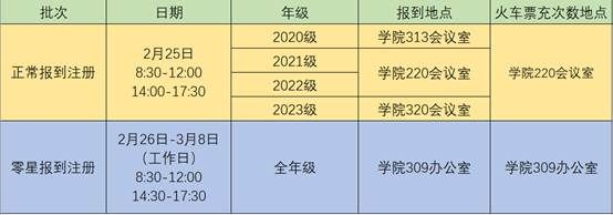 按照学校《关于2023-2024学年第二学期本科生报到注册》的通知要求(http://uc.whu.edu.cn/info/1517/17348.htm),2024年2月25日全天为本科生报到注册时间。现将报到注册工作安排如下: