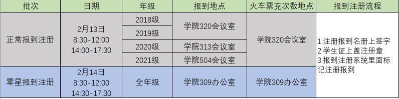 按照学校《关于2021-2022学年第二学期普通本科生报到注册》的通知要求(http://uc.whu.edu.cn/info/1039/12866.htm),2022年2月13日(周日)全天为普通本科生报到注册时间。同时学校为方便2月13日晚到校同学报到,注册系统开放时间为2月13-14日两天。根据疫情防控要求,本次采用年级分开报到的原则,现将报到注册工作安排如下,请同学们携带校园卡和学生证到自己年级所对应会议室办理报到注册手续。