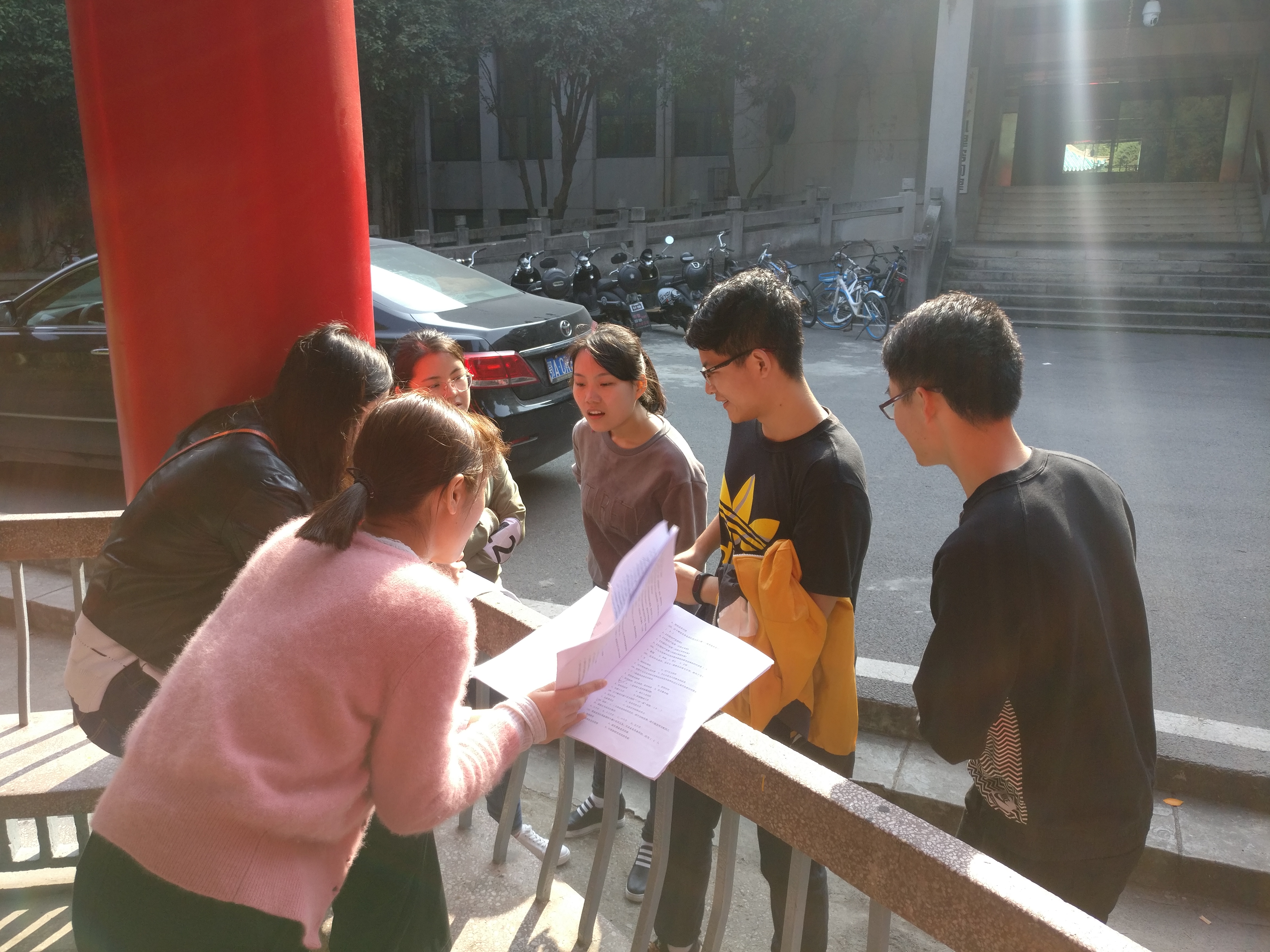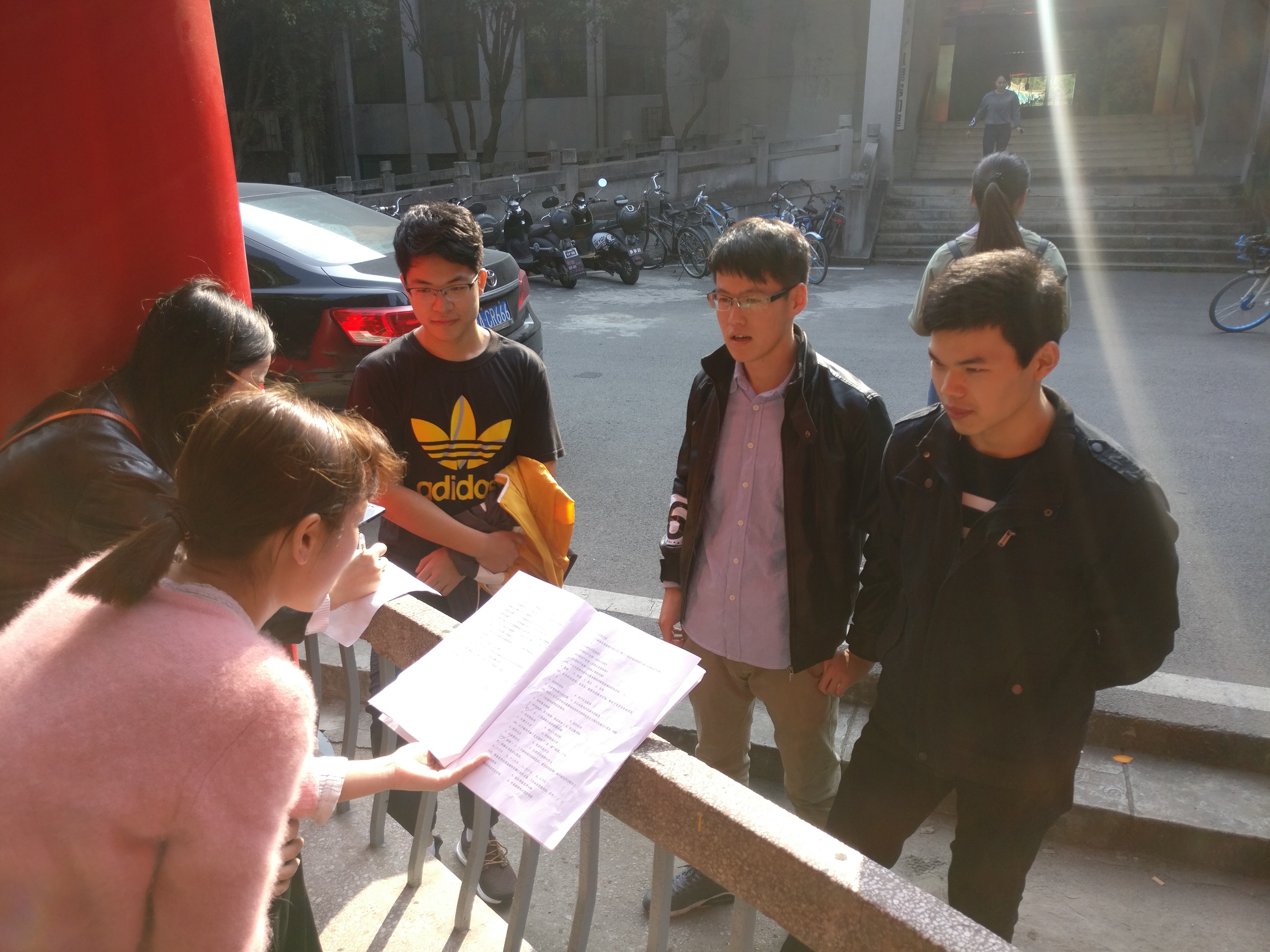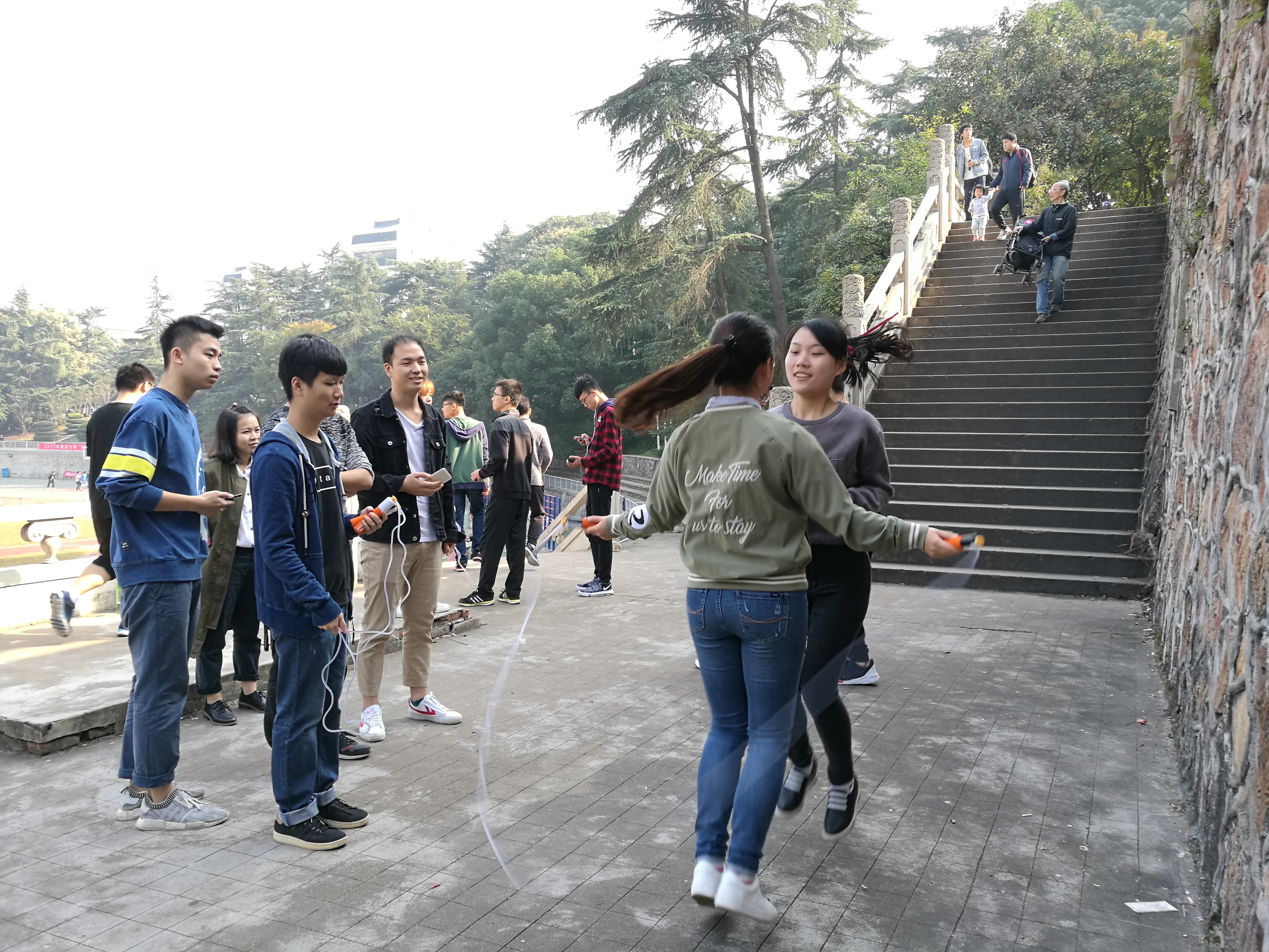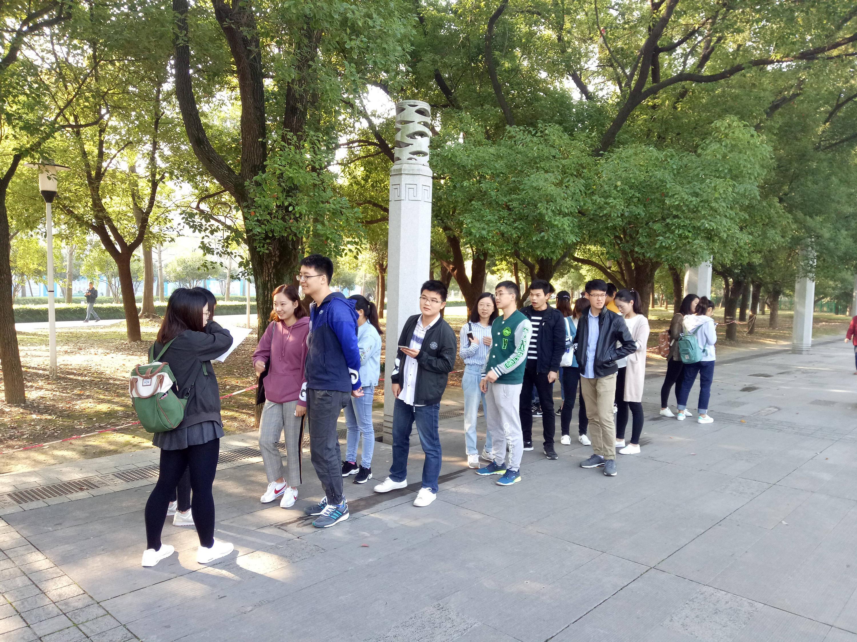 此次活动分为五个关卡:(1)正门牌坊:连线十九大——说出关键词;(2)“六一亭”:一触即发——党建知识简答;(3)李达雕像:追根溯源——武大的红色历史人物知多少“连连看”;(4)九一二操场:疯狂来往一起跳——你说我猜+跳绳;(5)老图樱顶:齐力冲顶——两人三脚+校史问答。活动于上午9时准时打响,工作人员按照策划书内容进行赛前培训与合理分工,提前一个小时到场进行场地布置,与此同时,参赛人员两两组队,不分年级与性别,则按照指定路线与内容展开活动。活动伊始,参赛队伍提前10-15min到达正门牌坊抽签决定出赛顺序,然后贴上相应的号码牌,等待开始答题指令。
