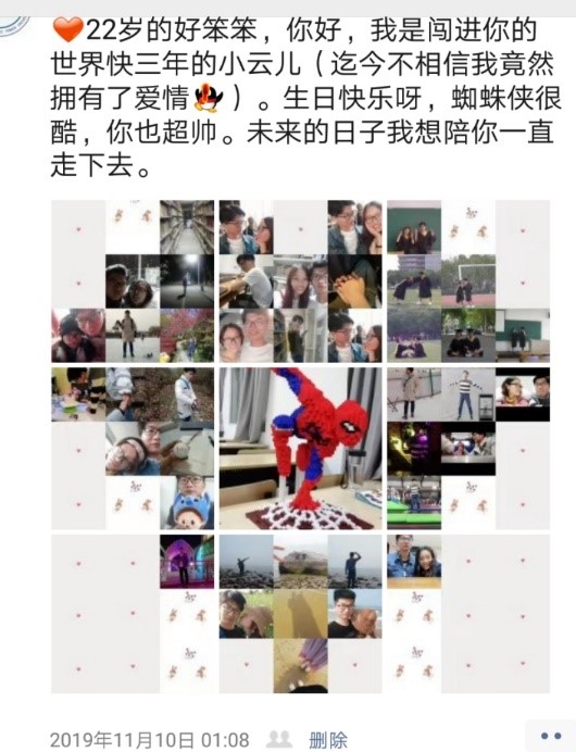 好笨笨23岁生日快乐,和你携手度过第三个生日,第四个年头,但每次见你都有初见时的紧张与欢喜。我的反射弧似乎长了点,我觉得我们的感情还处在热恋阶段。和你在一起,每天都在谈恋爱。我想要疯狂、热情的爱,但物理学告诉我们能量越低越稳定。所以有时我会压抑自己,对你的爱不能表达的太多、太直接,也不能太满,太满会互相伤害。现在我不想管太多,爱就是爱。