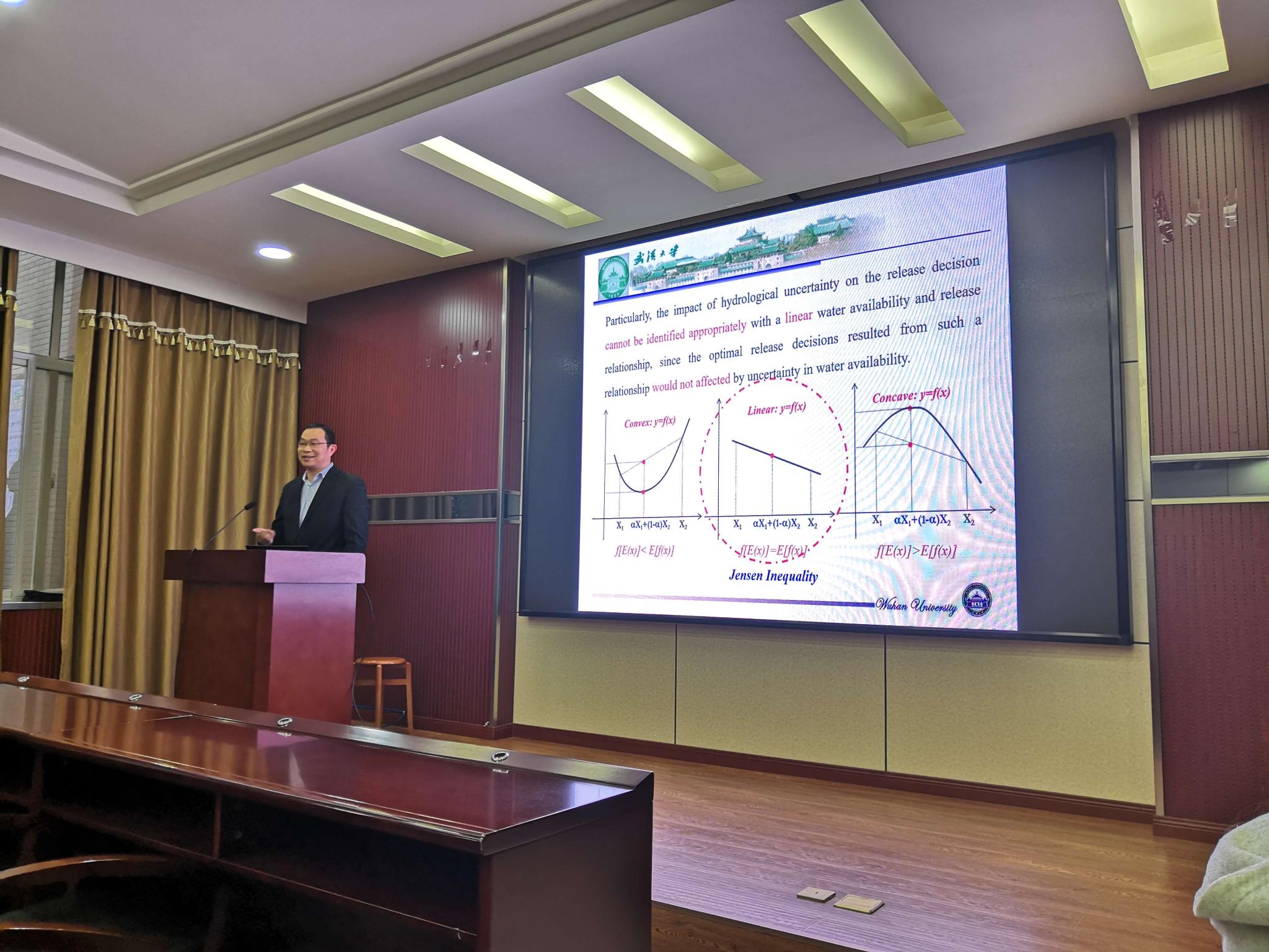 2020年12月3日下午四点半,在学院220学术报告厅举办了“珞珈资源环境讲坛”第五十讲,报告人为曾祥特聘副研究员。曾老师以“Linearvs. nonlinearhedgingruleforreservoiroptimizationoperation”为题,为我们带来以一场精彩的学术讲座。