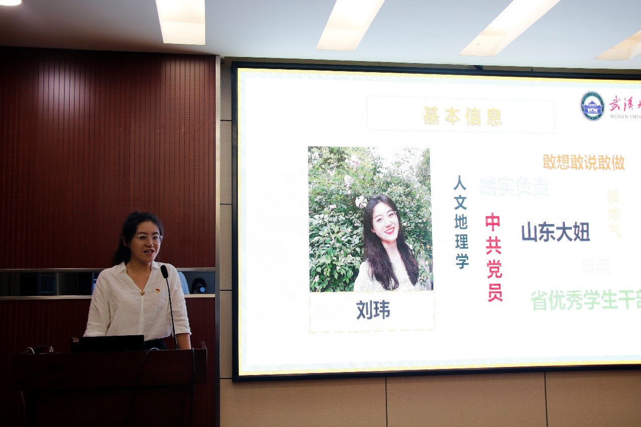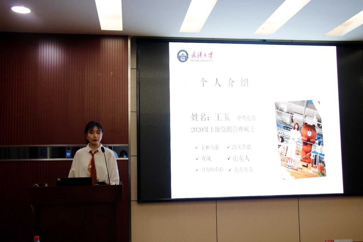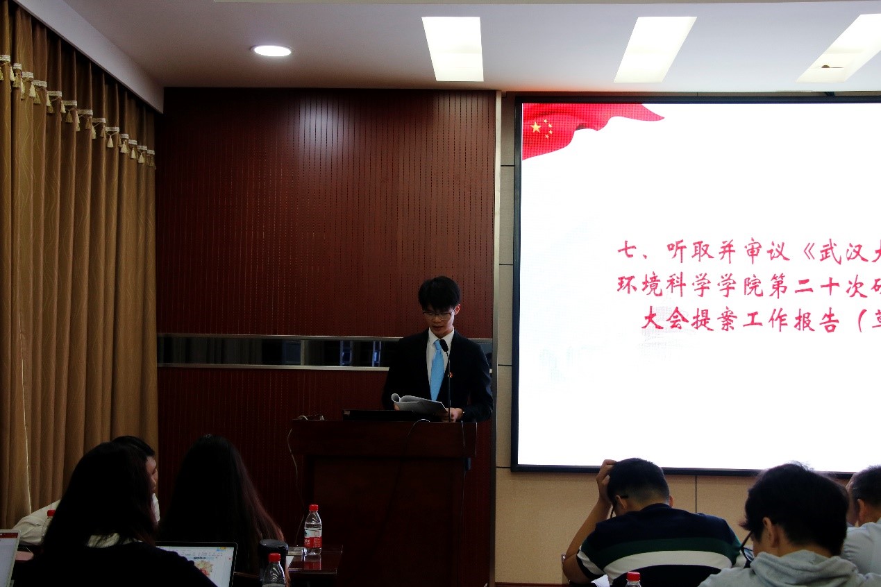 随后,武汉大学研究生会主席团成员张俊杰同学也对第十九届研究生会的工作进行了肯定,以及感谢了资环研会对校研会的工作的支持,在服务同学、研会改革、思想建设等方面对提出了期望。
