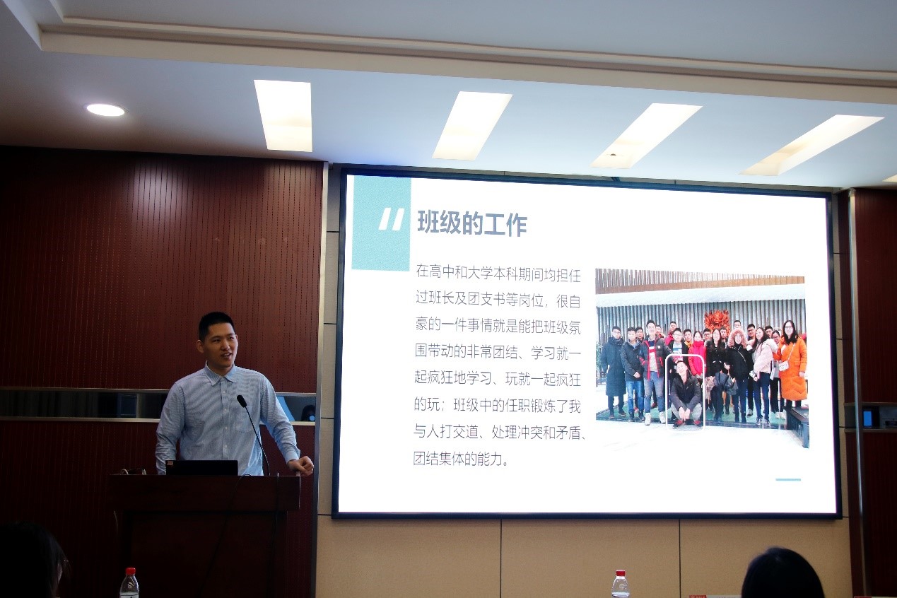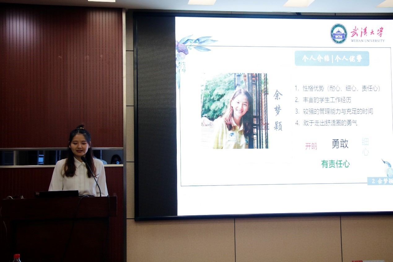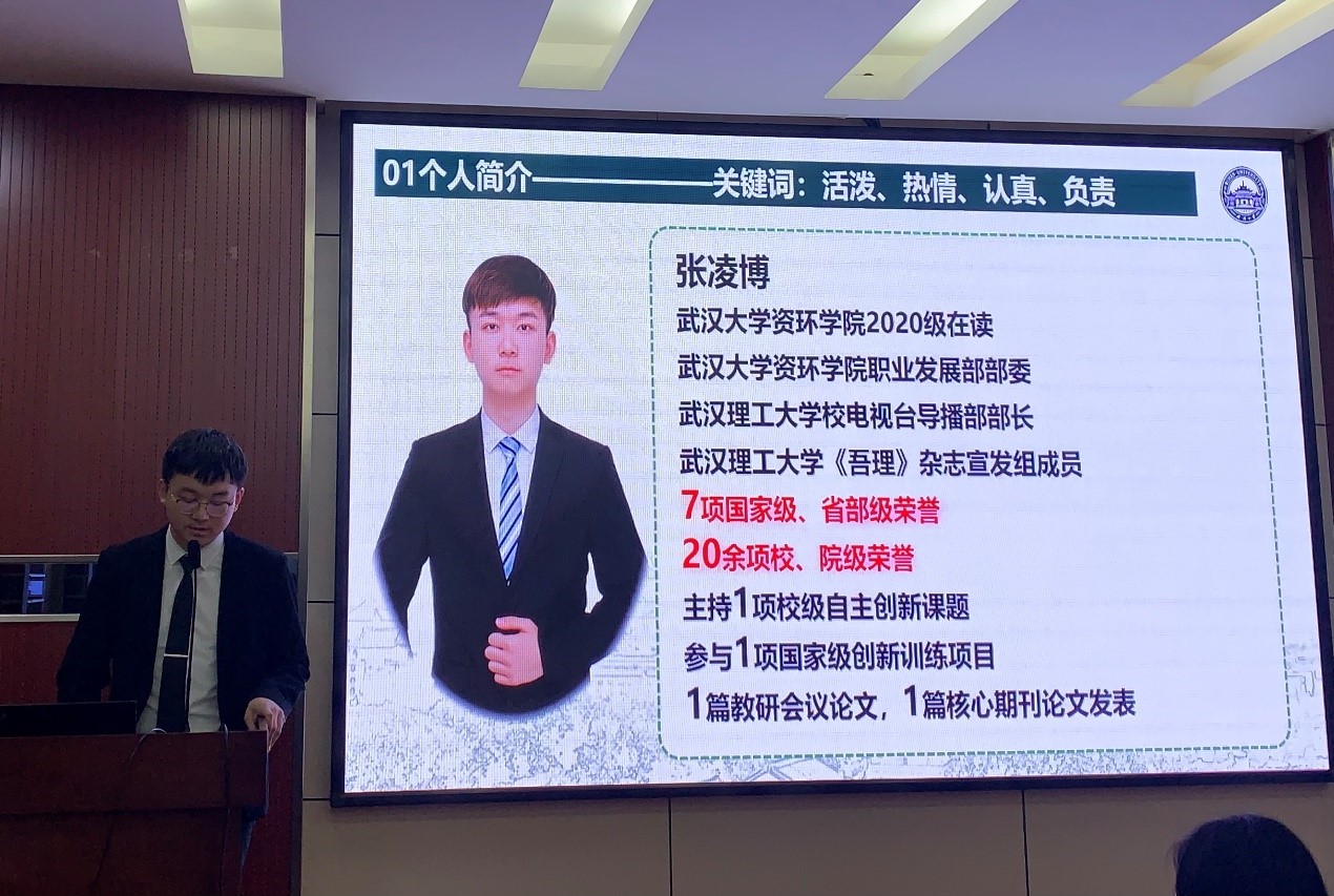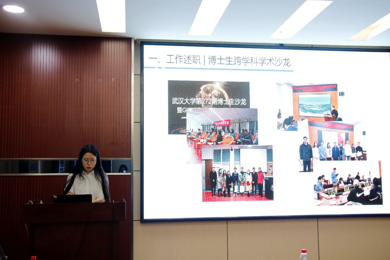 随后,武汉大学研究生会主席团成员张俊杰同学也对第十九届研究生会的工作进行了肯定,以及感谢了资环研会对校研会的工作的支持,在服务同学、研会改革、思想建设等方面对提出了期望。