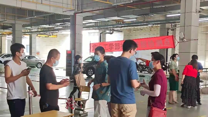 2020级环境工程专业博士王登台成为武大测绘社区核酸检测现场的一名志愿者,负责维护队伍秩序、发放解暑物品等工作。