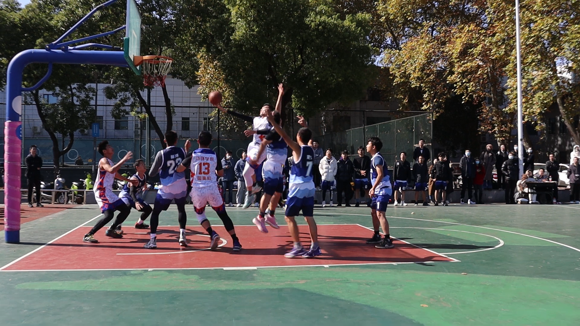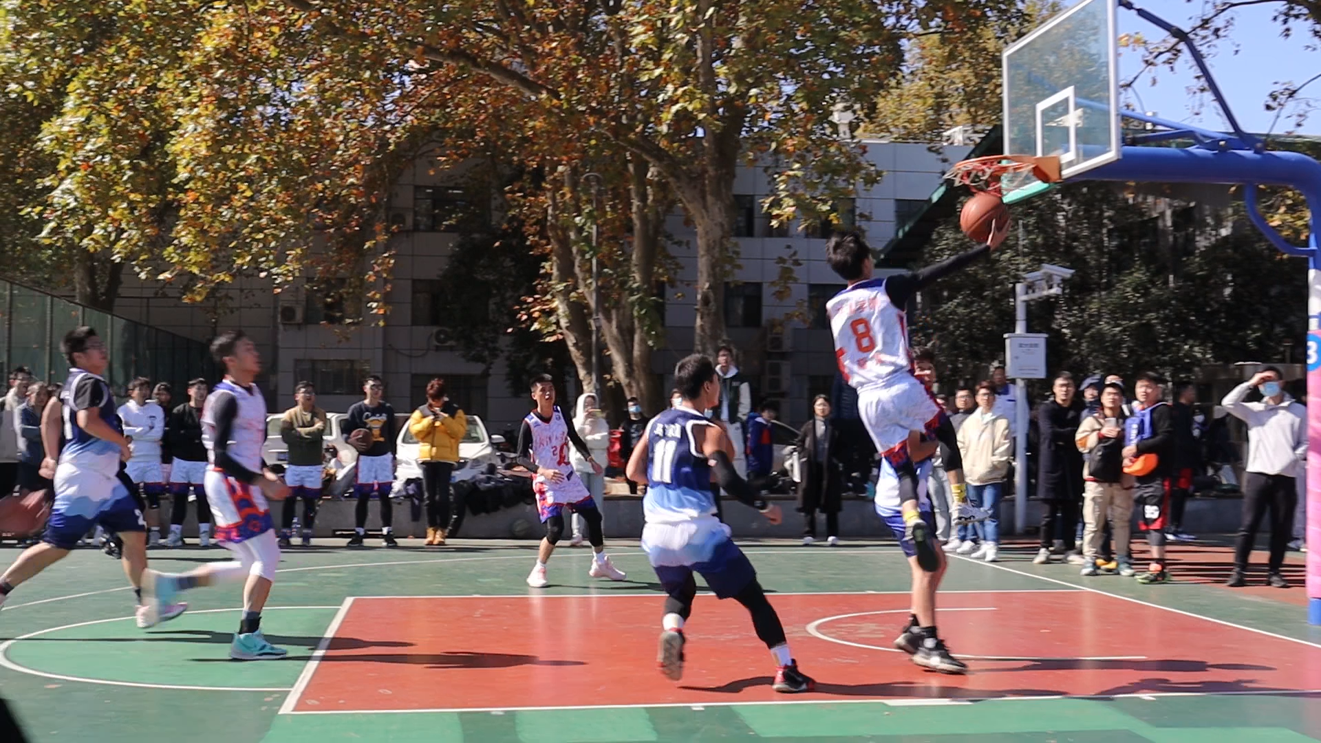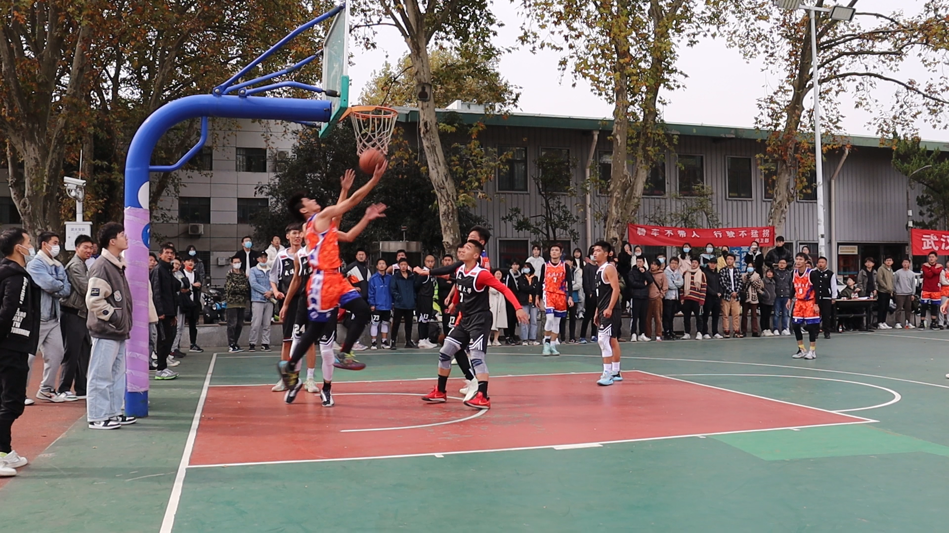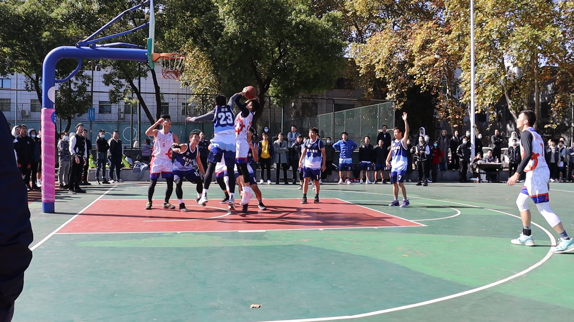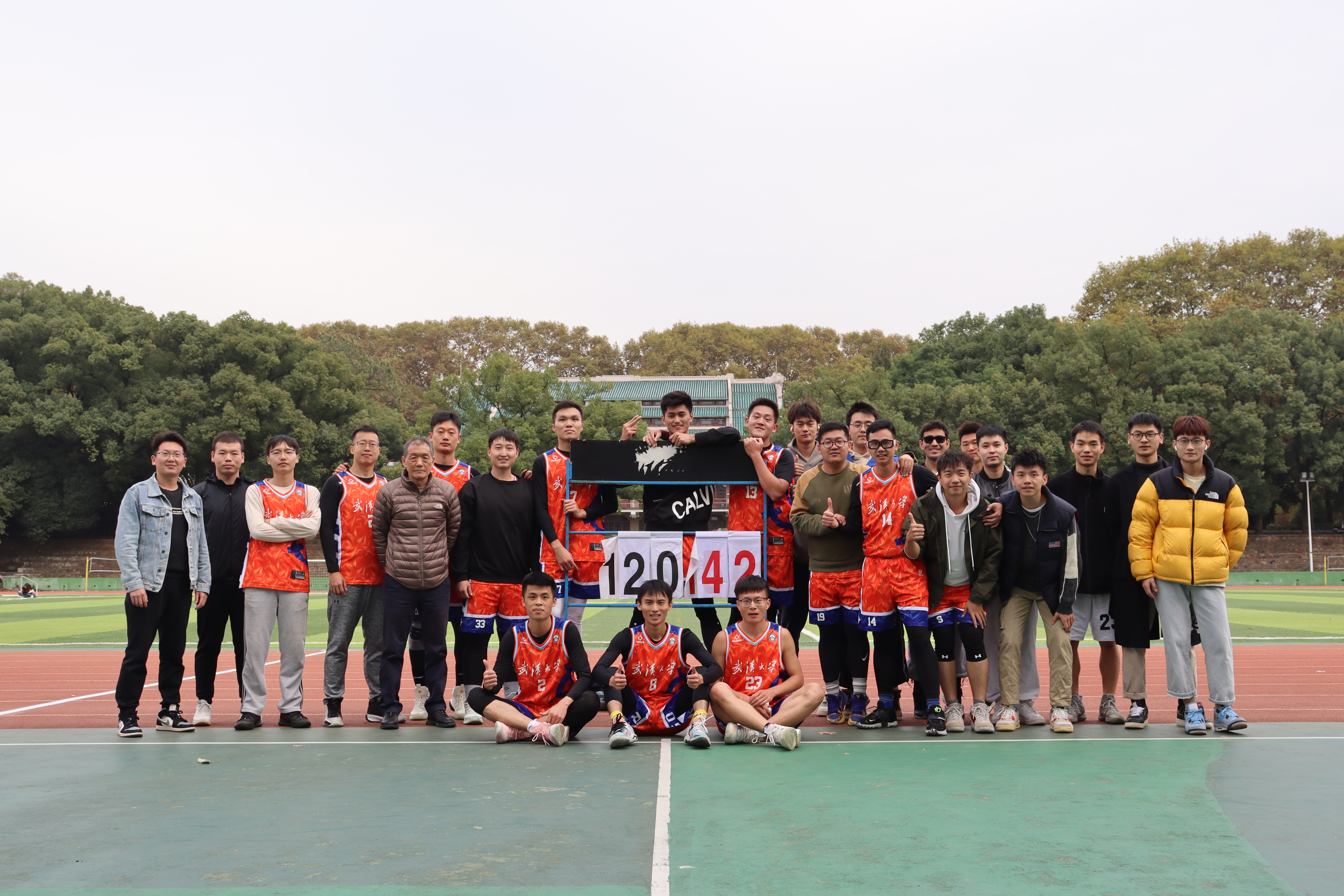 武汉大学2021年研究生篮球赛淘汰赛于11月8日在桂园操场举行。我院篮球队在面对电信学院的8强争夺战当中取得胜利,顺利挺进8强,并于9日在与生命科学学院的4强争夺战中取得胜利,进入半决赛。