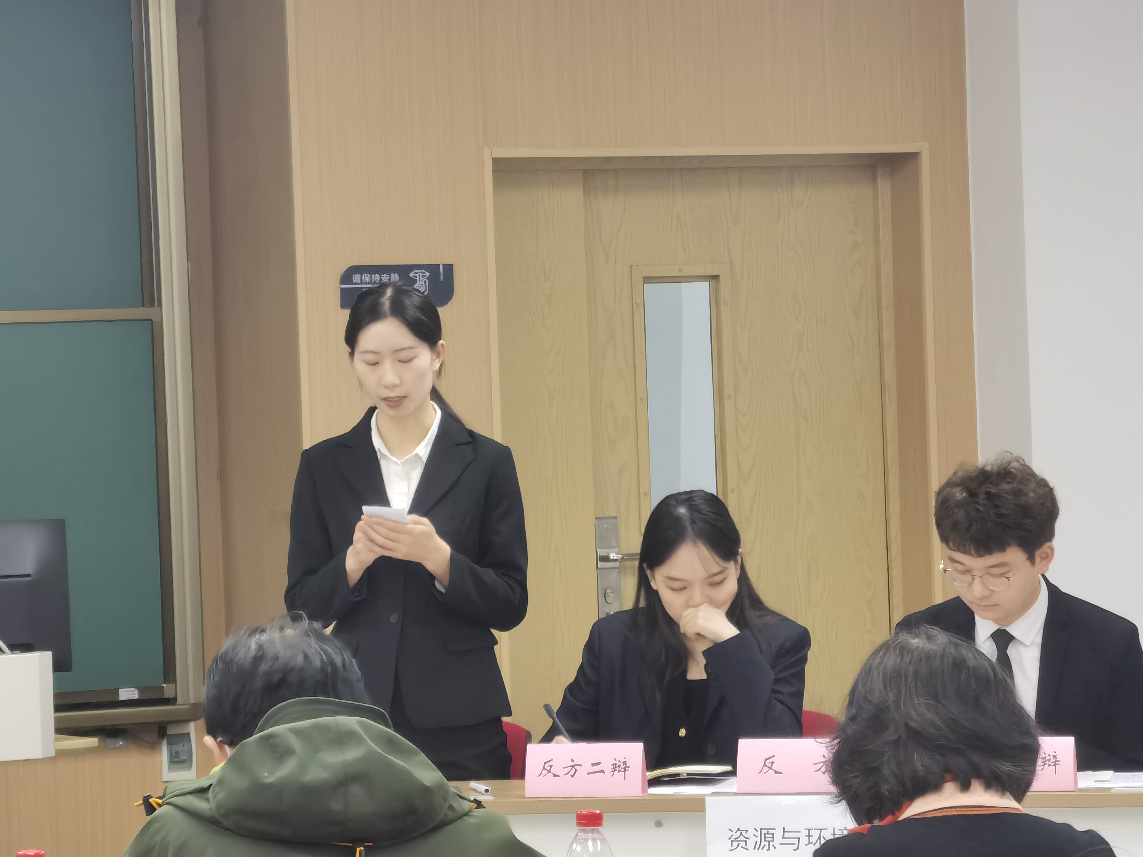 比赛开始,双方一辩进行了开场立论陈词,阐明了本方的观点。我院一辩周亚娟以知识垄断不利于知识的生产、传播与利用三个角度为核心,深刻阐述了知识垄断将限制甚至排除竞争,对于知识的进一步转化有弊无利的核心观点。