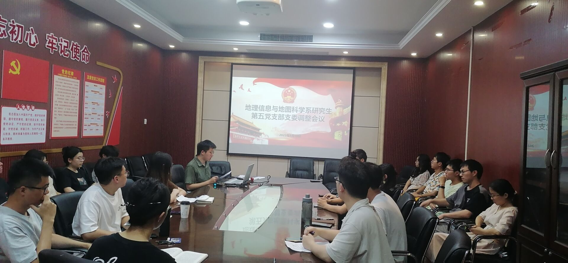 2023年9月19日地理信息与地图科学系研究生第五党支部于开云官方.中国504会议室召开组织生活会暨支委调整会议。本次会议由支部书记邹仁伟同志主持,主要内容包括组织生活会与支委调整与选举。本次会议应到正式党员及预备党员28人,实到参会党员23人。