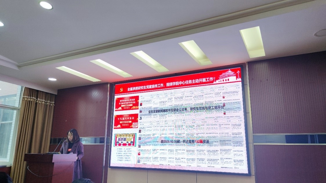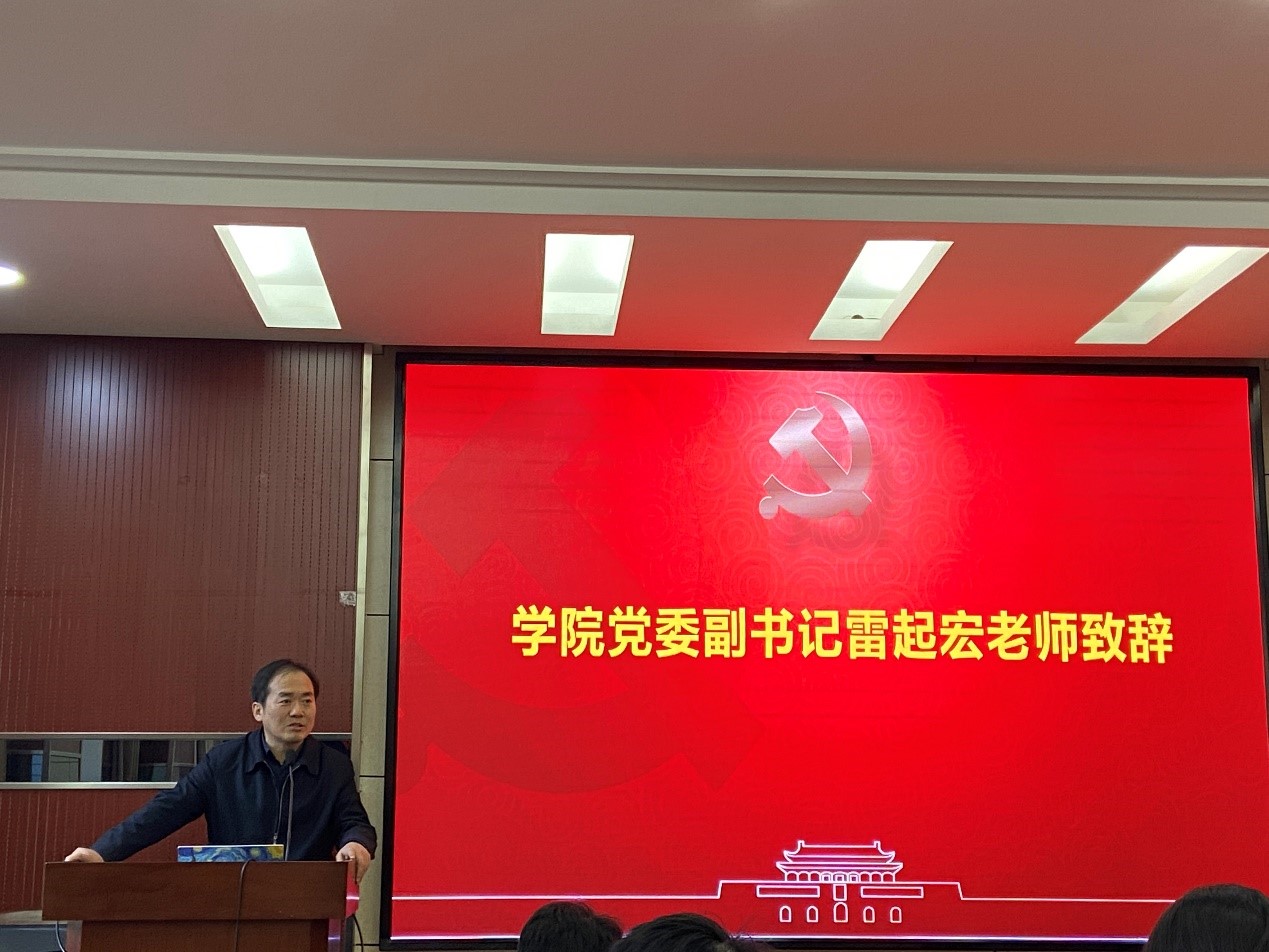 首先,由院党委副书记雷起宏老师致辞。研究生党建工作至关重要,我院党委一直以来对学生党建工作高度重视,大力支持党支部工作。党支部书记联席会可以协助党委做好研究生党员的教育、管理、监督和服务工作,做好党支部的规范化建设,培养一批具有坚定的理想信念、较强的科研能力、突出的带头作用、被师生认可的优秀共产党员。