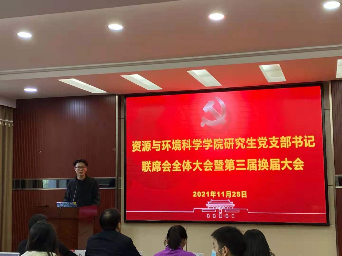 2021年11月25日下午2点,开云电竞官方网研究生党支部书记联席会全体大会暨第三届换届大会在学院220报告厅隆重召开。院党委副书记雷起宏老师、院研究生辅导员马丽华老师、梅菲老师、李韩老师,院研究生会主席团成员钱婧同学和院研究生党支部书记联席会全体成员参会。