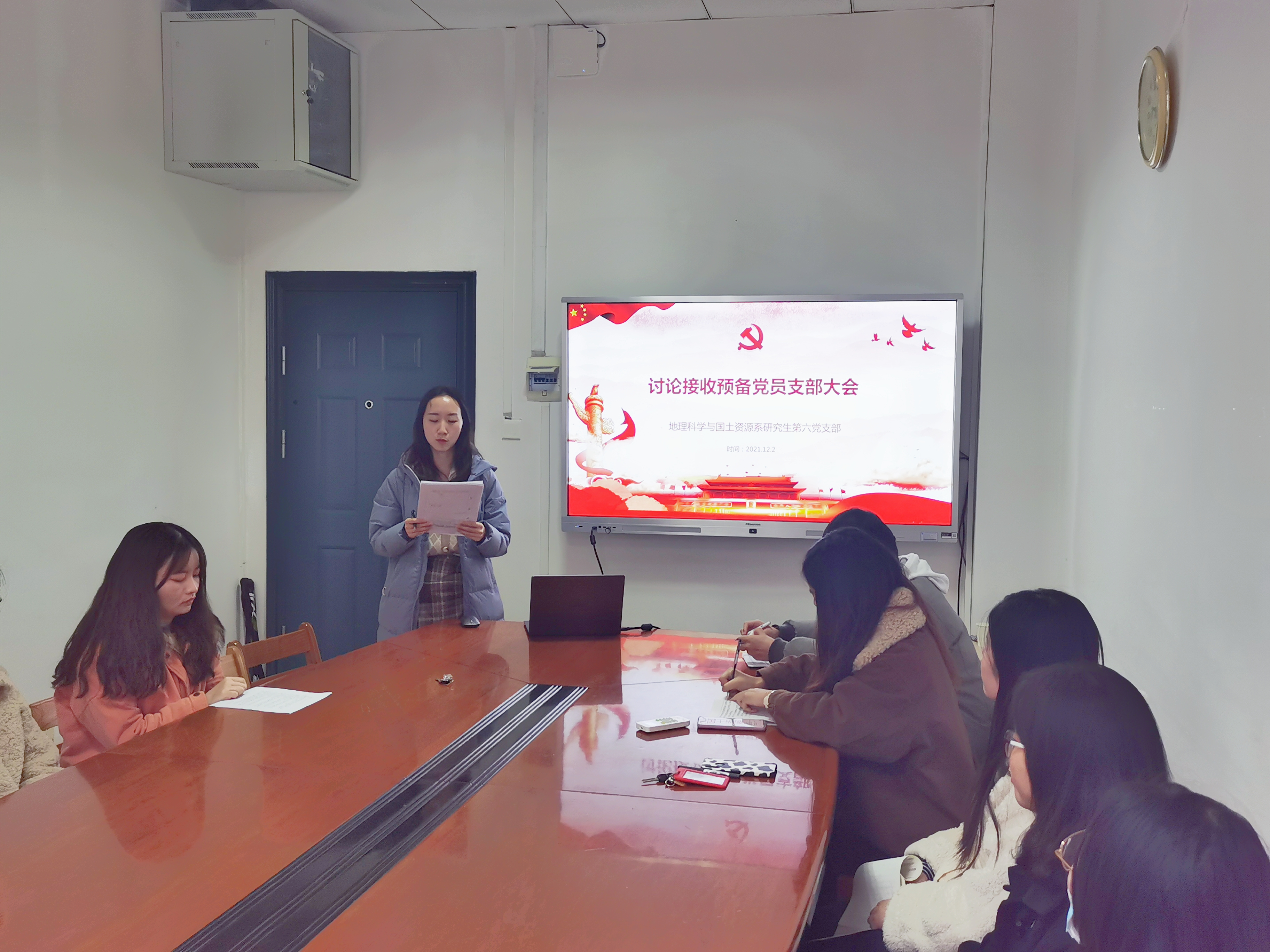 202112216:30,地理科学与国土资源系研究生第六党支部于开云官方.中国313会议室召开了支部大会。本次会议由支部书记罗明霞同志主持,主要内容包括接收曹敏雪同志为预备党员和刘玉同志的预备党员转正讨论。