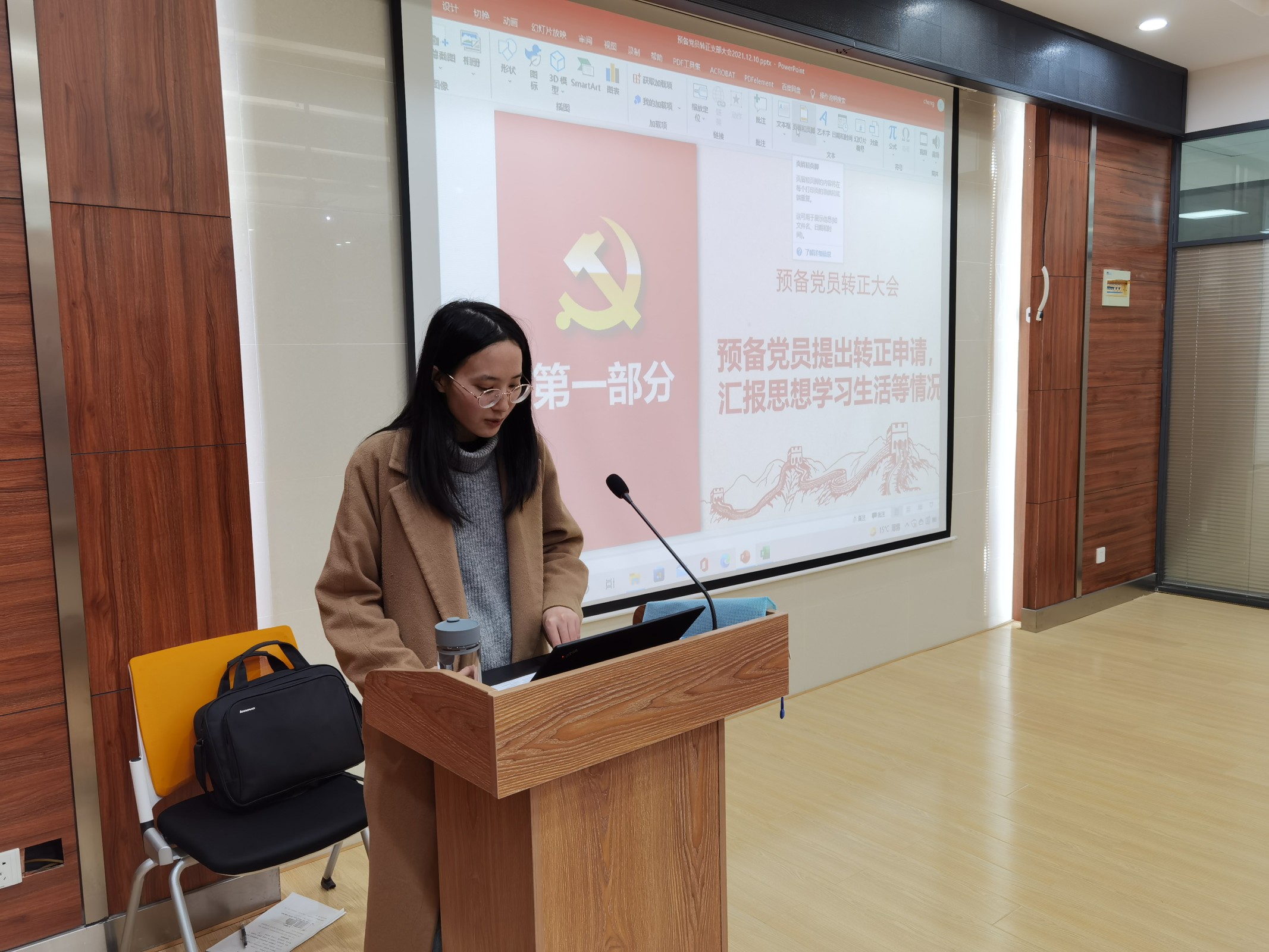 会议开始,程鹏同志简要介绍了本次会议的流程与事项,向大家汇报了本次会议应到党员31人(21名正式党员、10名预备党员),实到党员23人(15名正式党员、8名预备党员),符合会议程序,宣布接收预备党员暨预备党员转正大会可以召开。