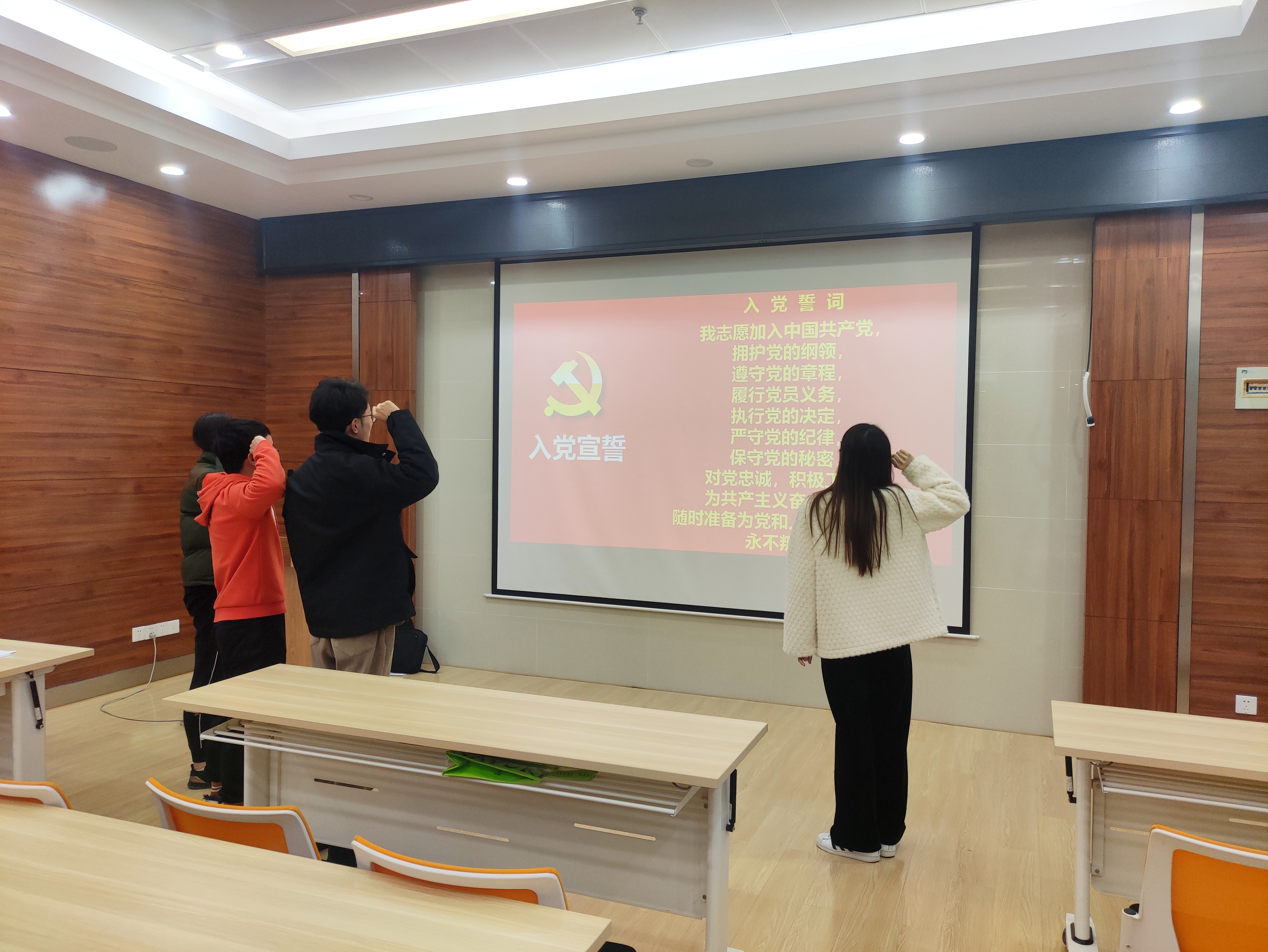 首先,预备党员唐春明、季小宇和马亚慧同志分别向党组织汇报了预备期间思想、生活、科研工作、对党的认识以及入党动机等需要对党说明的问题;再由各自的两位入党介绍人分别介绍转正申请人在预备期间的表现情况并一致同意如期转正;报告完毕后,与会党员对三位同志能否如期转正分别发表了意见,一致认为其符合共产党员的标准;经与会的正式党员无记名投票,党支部书记汤慧玲同志宣布,唐春明、季小宇和马亚慧同志全票通过并如期转为中共正式党员;最后,由党支部书记汤慧玲同志带领唐春明、季小宇和马亚慧同志进行入党宣誓。