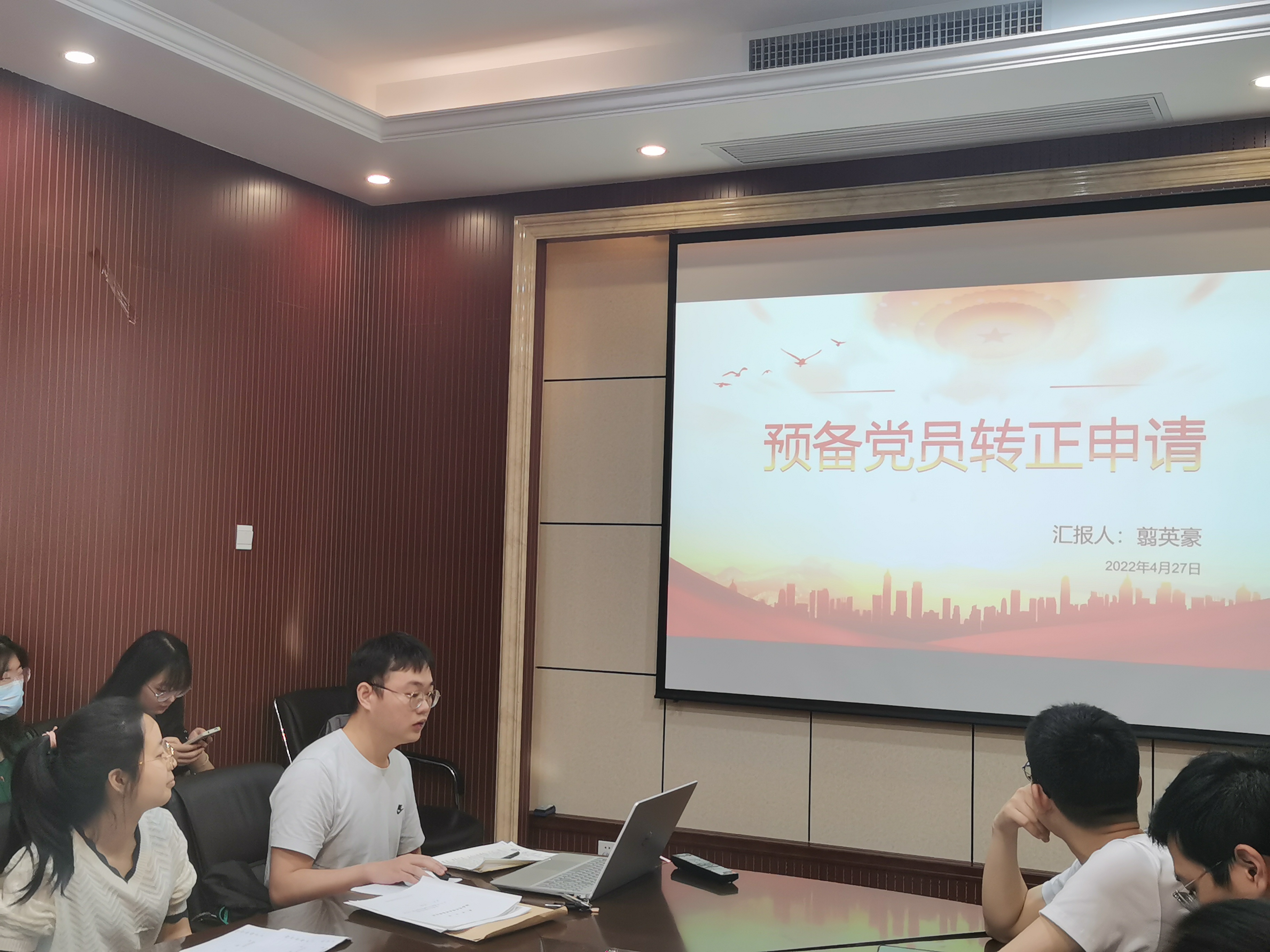 2022年4月27日上午10:00,环境科学与工程系研究生第一党支部在开云官方.中国504会议室召开接收预备党员暨预备党员转正大会。本次会议邀请学院分管研究生工作的党委副书记马丽华老师出席,会议由党支部书记苏会钰同志主持,支部党员、发展对象、入党积极分子及入党申请人参与此次会议。本次会议应到正式党员26名,实到正式党员23名,有表决权的到会人数超过应到会有表决权人数的半数,符合规定人数。