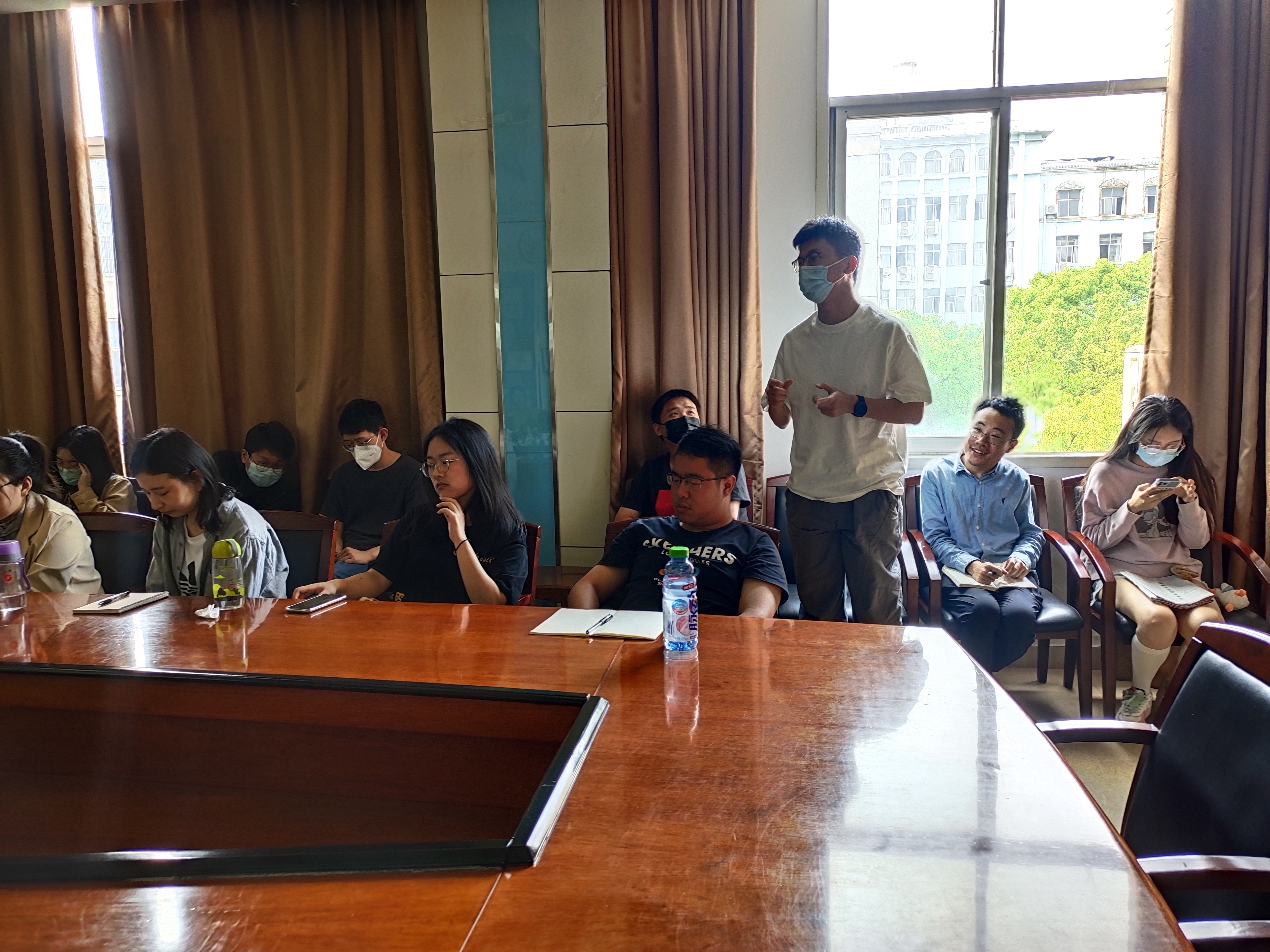 最后,在场同志与两位老师就相关主题进行了积极交流与讨论。李韩老师就乡村规划效果评价与分析对孔老师进行了提问。孔老师从政府、农民等不同主体角度进行回答,认为评价应该从现实效益与农民主观满意度方面开展。钟一鸣同志随后向刘老师询问了自然资源资产升值的测算相关问题。刘老师介绍了自然资产升值的测算现状与发展趋势,解释了GEP等重要指标内涵与作用。杨显曾同志就城市扩张与乡村振兴、乡村人减地增问题等与孔老师进行讨论。最后,徐智邦同志就合村并居对农村耕作方式的影响与孔老师展开交流。
