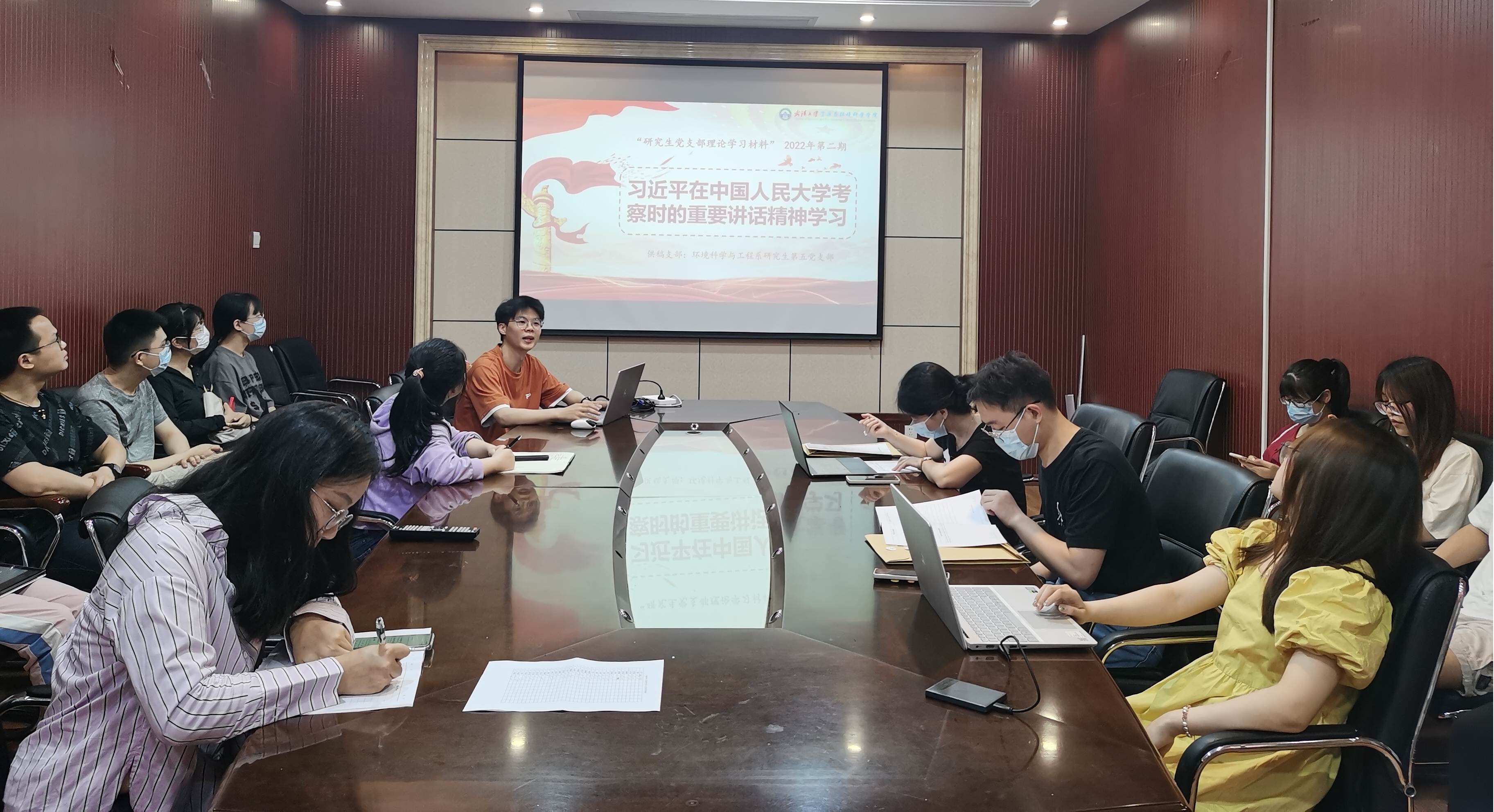 2022年5月30日上午10:30,环境科学与工程系研究生第一党支部在开云官方.中国504会议室召开学习“习近平总书记在中国人民大学考察时的重要讲话精神”主题党日活动。会议由党支部书记苏会钰同志主持,支部党员及发展对象、入党积极分子、入党申请人参与此次会议。