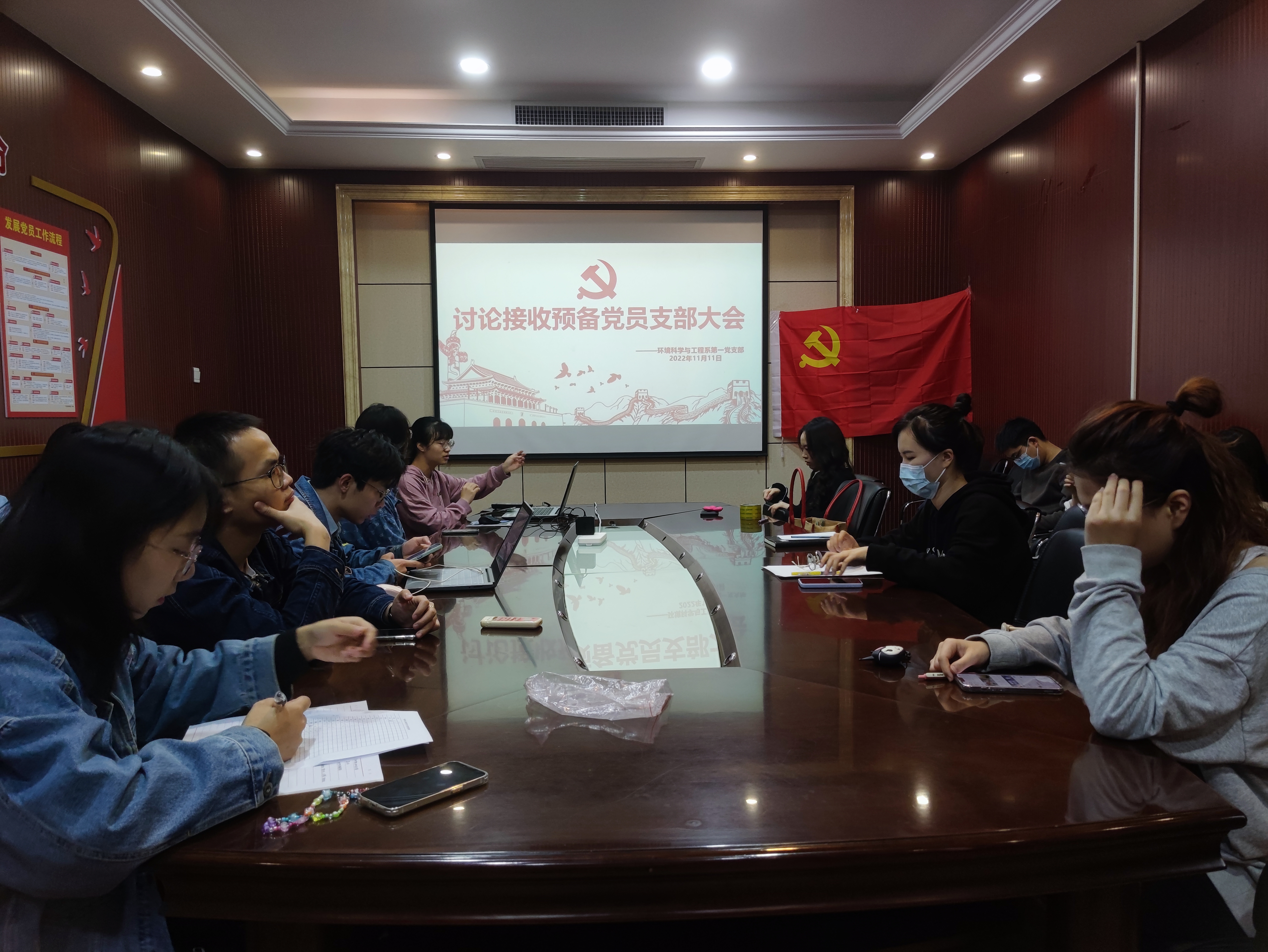 2022年11月11日上午10:00,环境科学与工程系研究生第一党支部在开云官方.中国504会议室召开接收预备党员支部大会。本次会议由党支部书记胡慧同志主持。支部党员、发展对象和入党积极分子参与此次会议。本次会议应到正式党员29名,实到正式党员23名,有表决权的到会人数超过应到会有表决权人数的半数,符合规定人数。