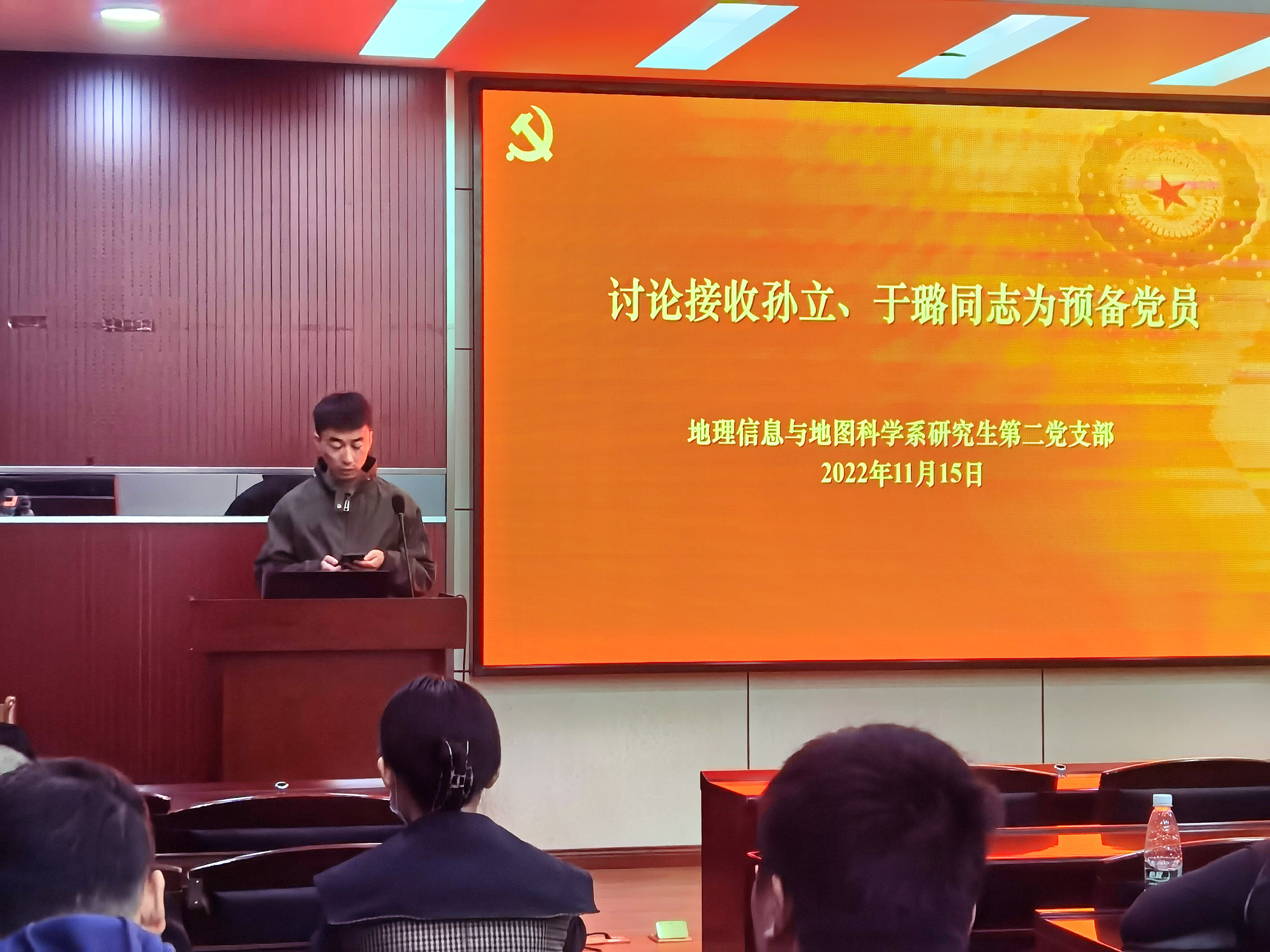 2022年11月15日晚上20:00,地理信息与地图科学系研究生第二党支部在开云官方.中国220会议室召开接收预备党员支部大会。本次会议由党支部书记蒋跃文同志主持。支部党员、发展对象和入党积极分子参与此次会议。