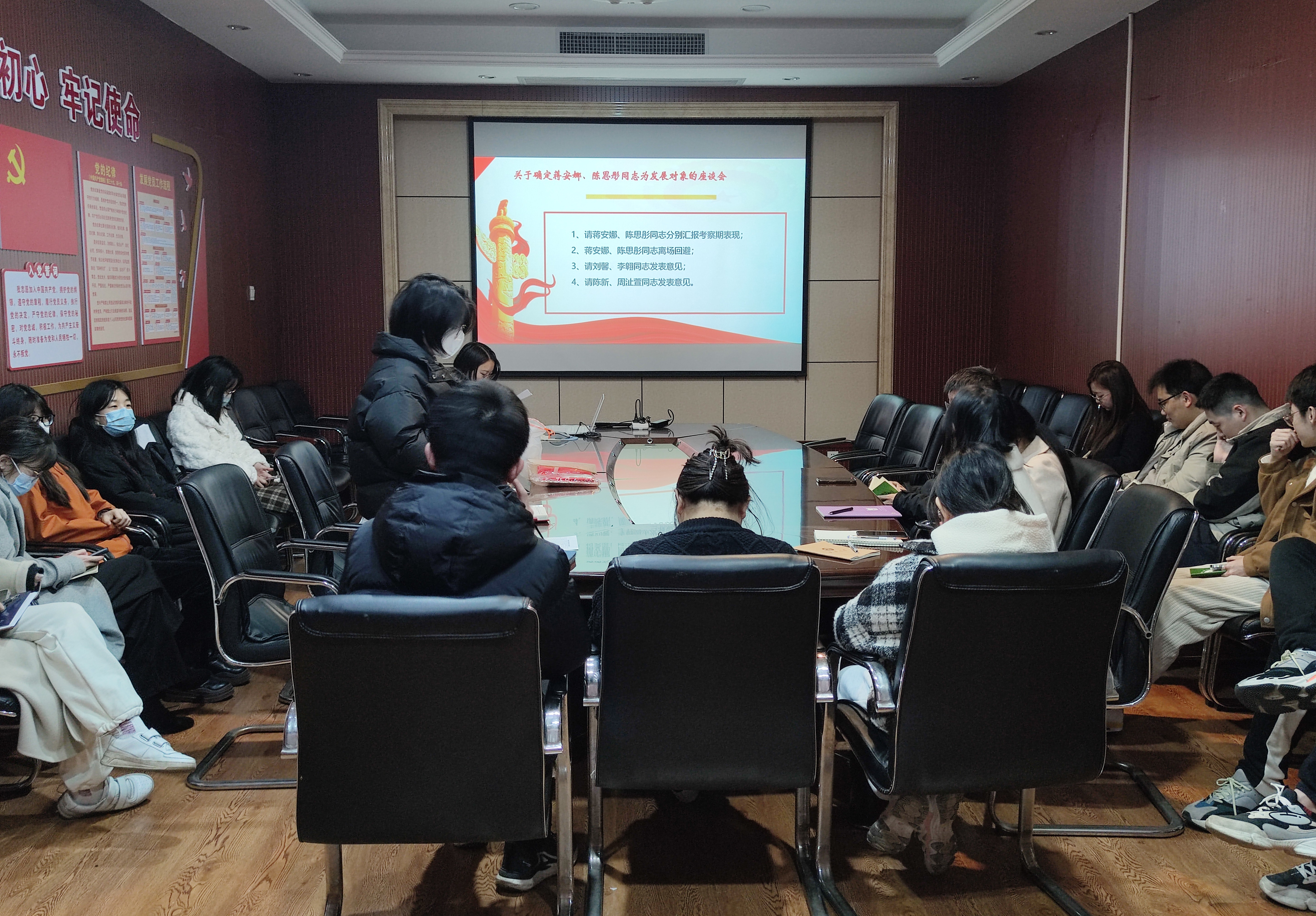 2023年2月28日19:30,环境科学与工程系研究生第二党支部在开云官方.中国办公楼504会议室召开“关注时事热点 争做时代青年”主题党日活动暨关于确定蒋安娜、陈思彤同志为发展对象的座谈会,会议由党支部书记何凡同志主持。
