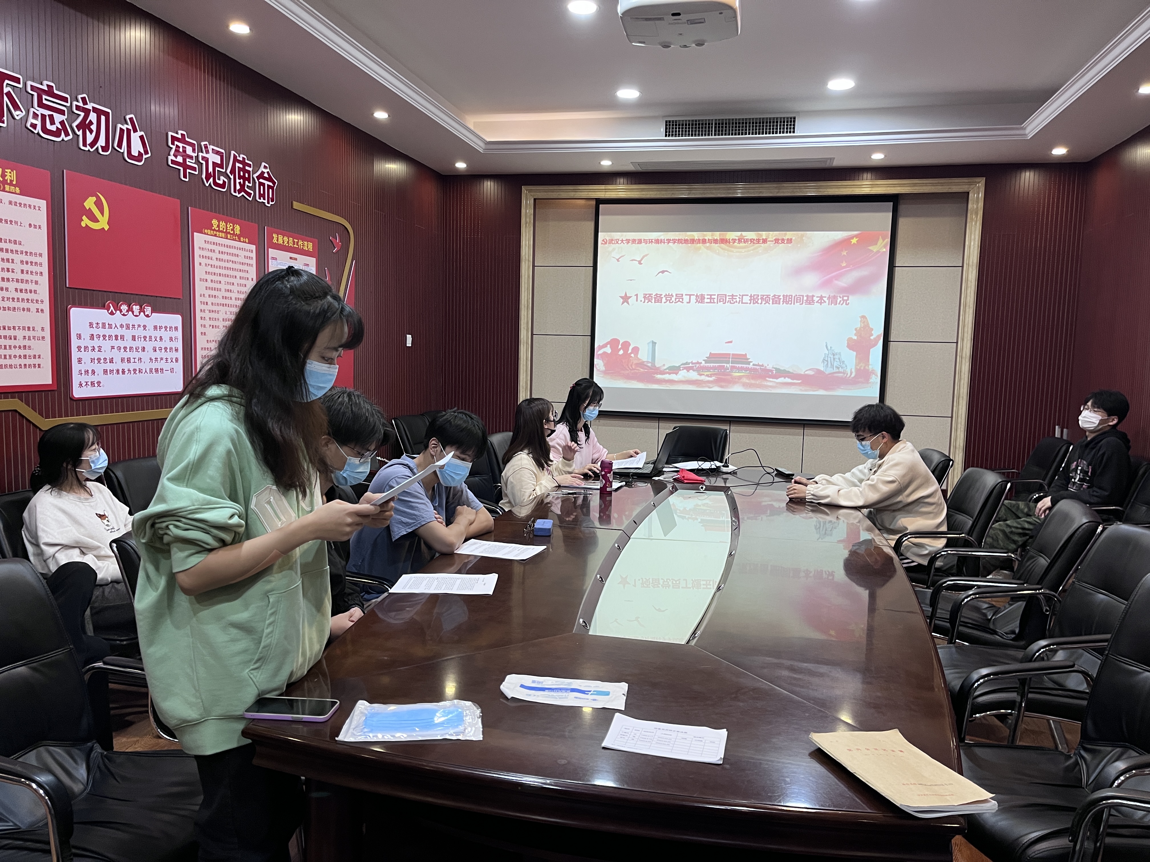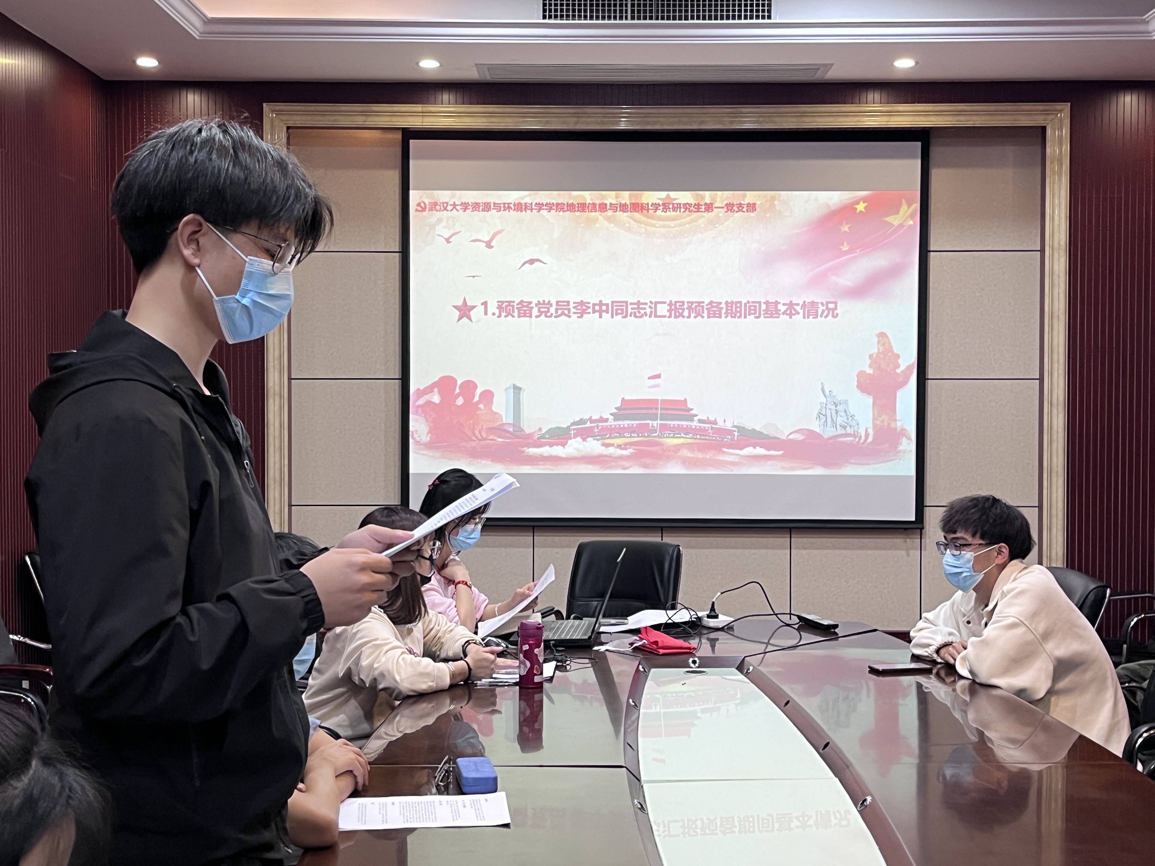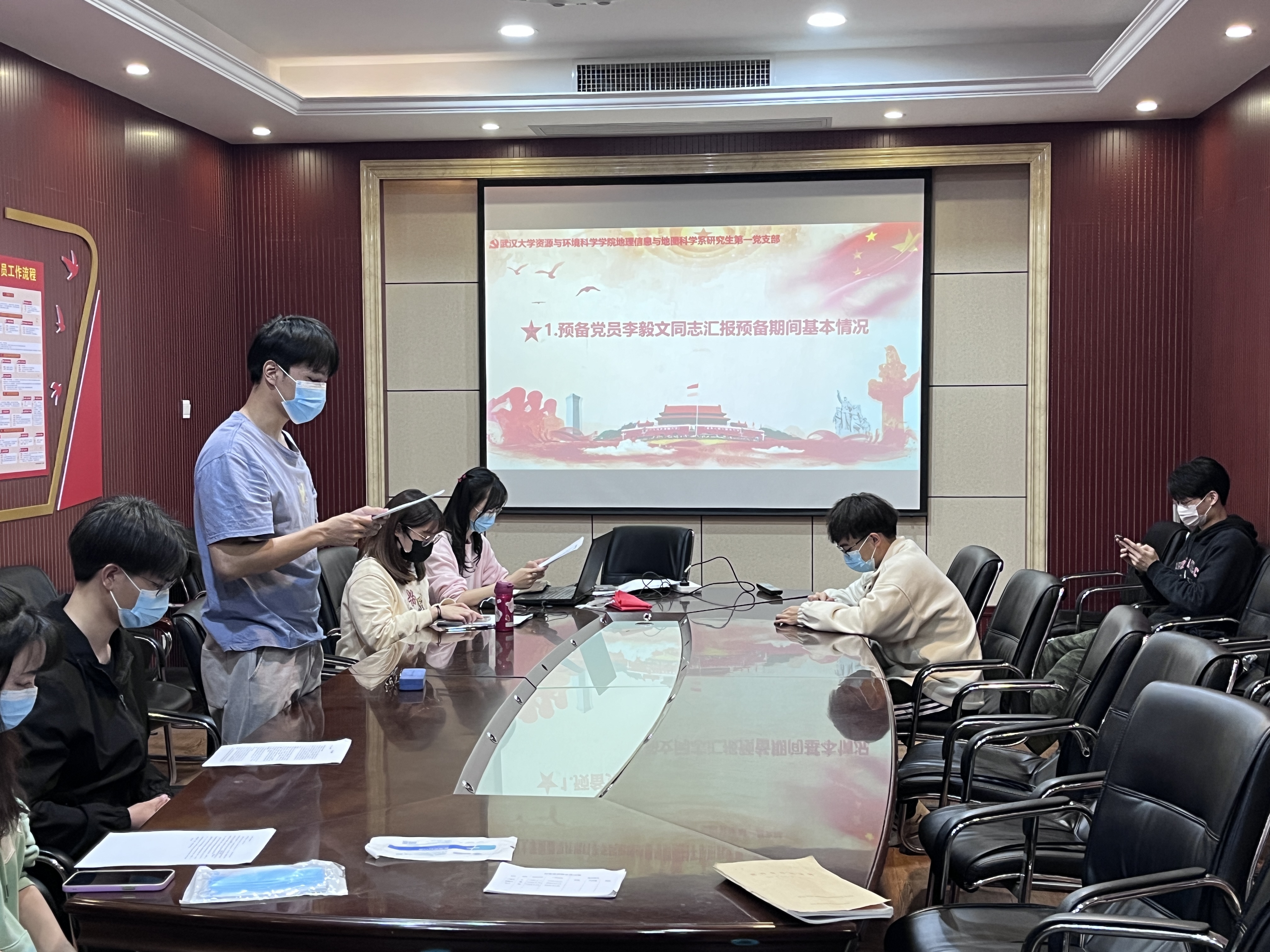 2023年3月10日晚6点半,地理信息与地图科学系研究生第一党支部于学院504会议室召开支部大会,讨论表决预备党员同志转正,并开展组织生活会。本次会议线上线下同时召开,应到正式党员22人,实到19人;应到预备党员6人,实到6人。会议由支部书记柯婷同志主持。