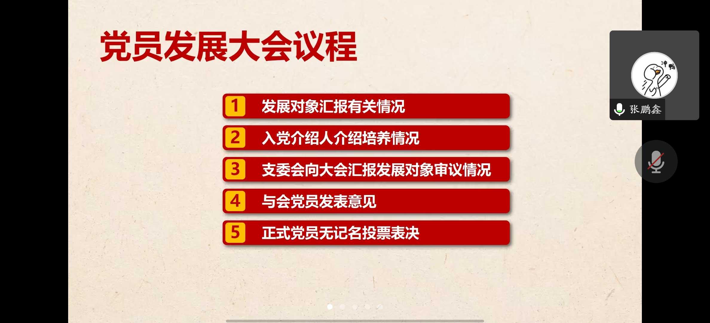 2023年3月29日晚上19:00,地理信息与地图科学系研究生第六党支部通过线上讨论的方式召开接收预备党员支部大会。本次会议由党支部书记周宇氚同志主持。支部党员、发展对象和入党积极分子参与此次会议。