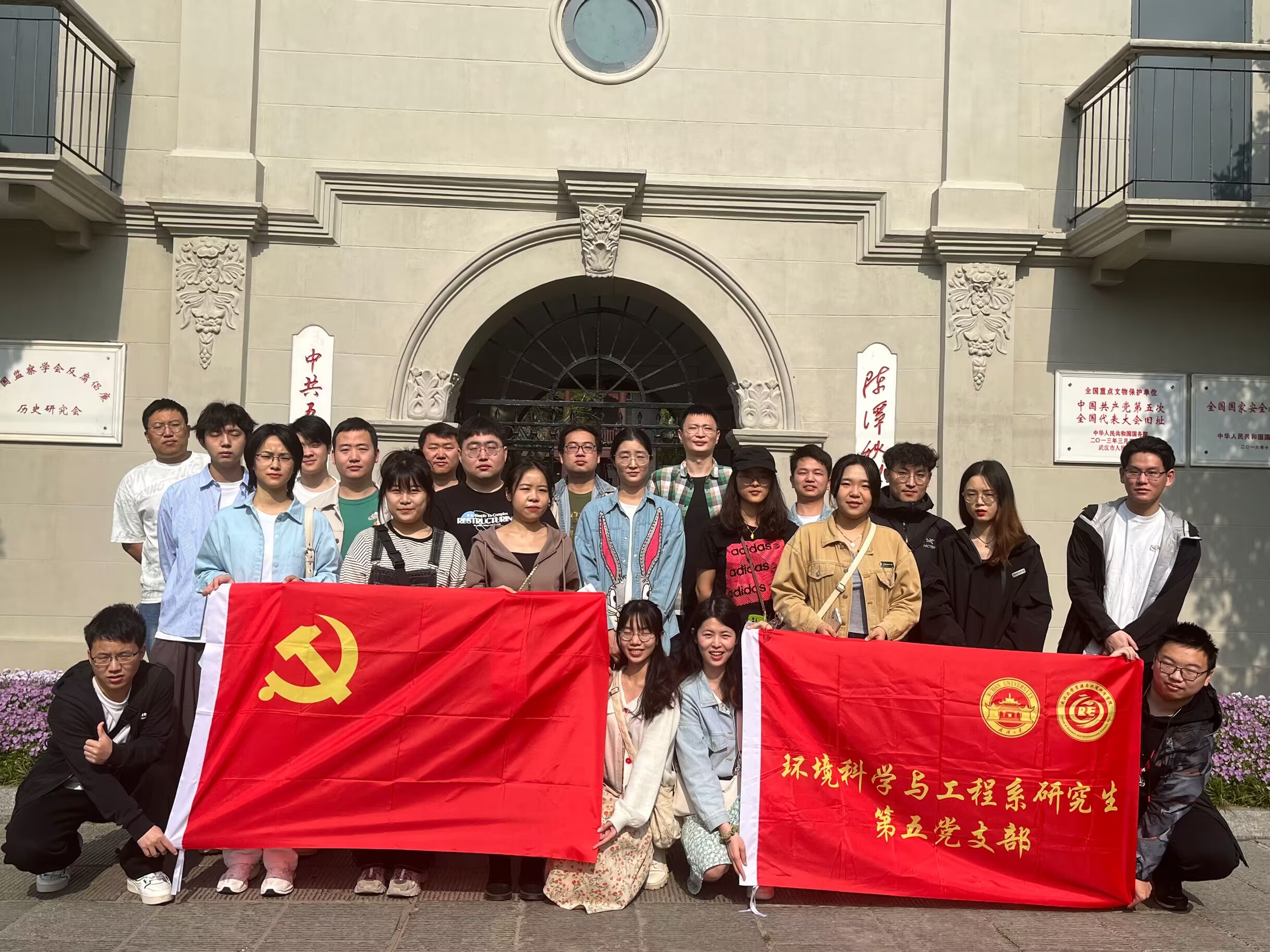 2023年4月11日上午,环境科学与工程系研究生第五党支部积极响应校党委的号召,组织开展“缅怀先烈事迹,继承革命精神”的主题党日活动。武汉革命博物馆坐落在武昌红巷13号,包含武昌农民运动讲习所旧址纪念馆、毛泽东旧居纪念馆、中共五大会址纪念馆、陈潭秋烈士纪念馆和武昌起义门。在此次党日活动中,支部党员们集体参观了武汉革命博物馆,感受历史,以史为鉴。