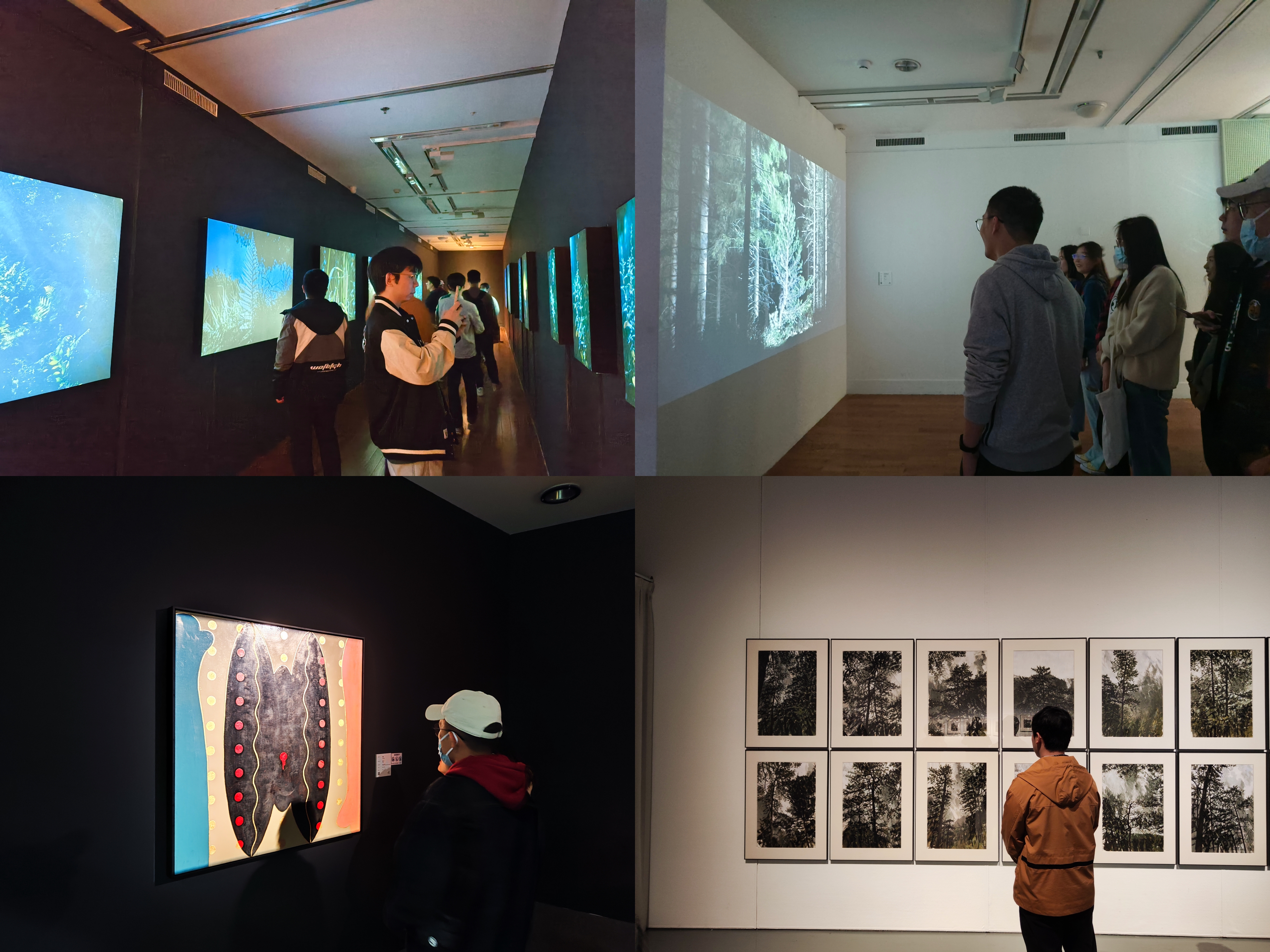 各支部成员们在美术馆内流连忘返于精雕细琢的艺术品的海洋之中。由曾任中国美术学院院长的艺术家许江创作的名为《山中方一日》的油画作品,既表达了对森林的写生和描绘,也展现了艺术家自己介入到环境当中的过程;来自法国的艺术家阿娜伊斯•唐德展出了名为《呼吸在夜晚》的作品,这是一个影像和装置的作品,艺术家将中国香水混合到几种法国植物之中,让大家既能感受到法国夜晚的花园氛围,又能闻到强烈的中国气味,表达了无论在中国还是法国或者世界上的其他地方,都存在着人们对绿色环境和美好生活的期待;中央美院教授章燕紫的《炁》长卷体现了艺术的通融性,长达20米的作品蜿蜒的布设在展厅顶层上,大家看到作品时仿佛沿着京杭大运河走了一圈,通俗易懂,感同身受。