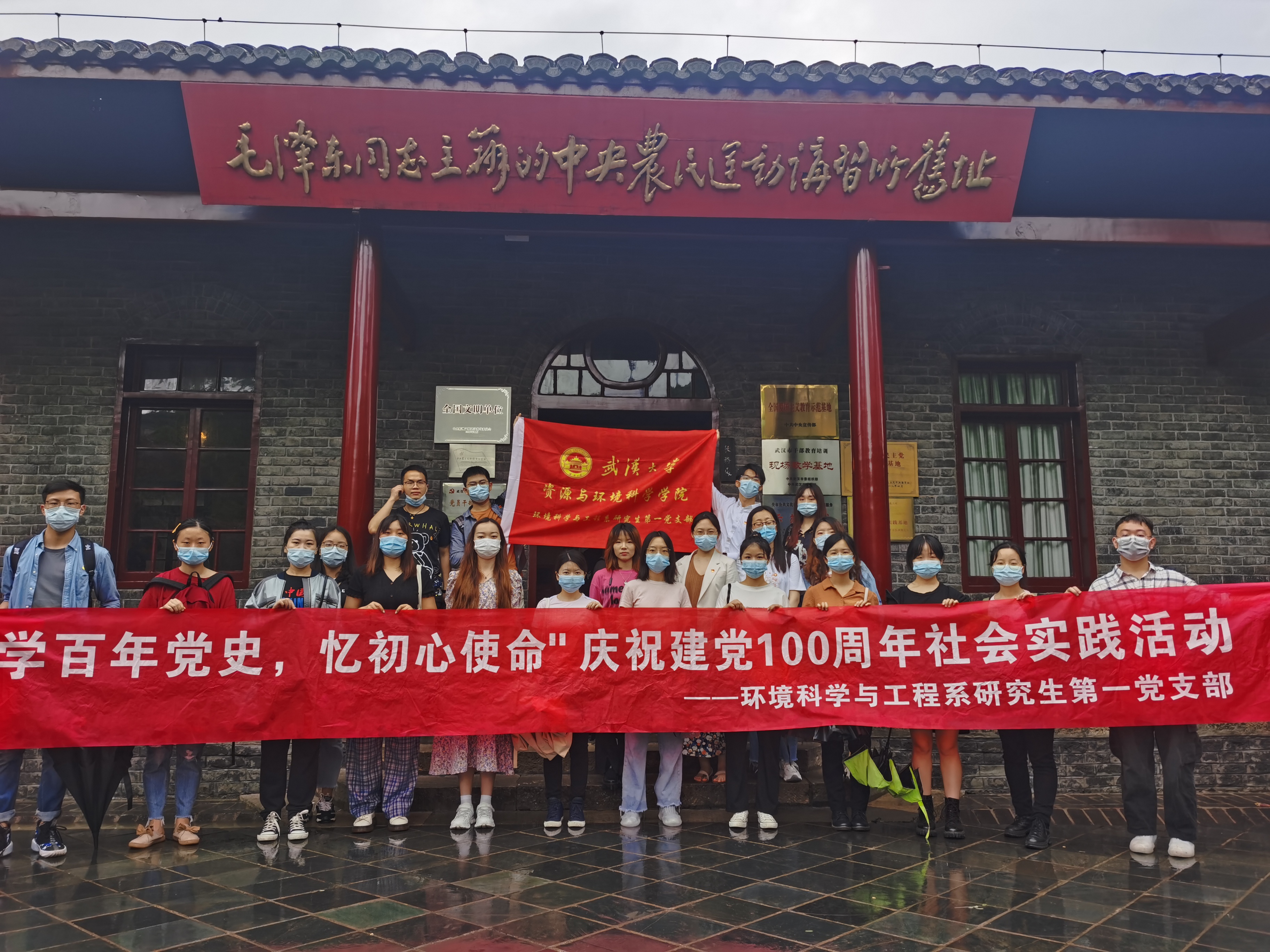 为了迎接建党100周年,促进党员深入了解党的历史,铭记先辈功勋,环境科学与工程系研究生第一党支部组织开展了“学百年党史,忆初心使命”实践活动活动。本次活动以“学百年党史,忆初心使命”为主题,感悟红色土地的沧桑巨变,对党的发展和时代变迁有了更直观的认识与体会。通过探访八七会议的会址、武昌毛泽东旧居纪念馆等实践活动;在实践中增强党员对革命传统精神的理解,引导青年学生深刻理解中国共产党百年来的光辉历程,牢固树立社会主义核心价值观,实现爱国主义精神的升华。