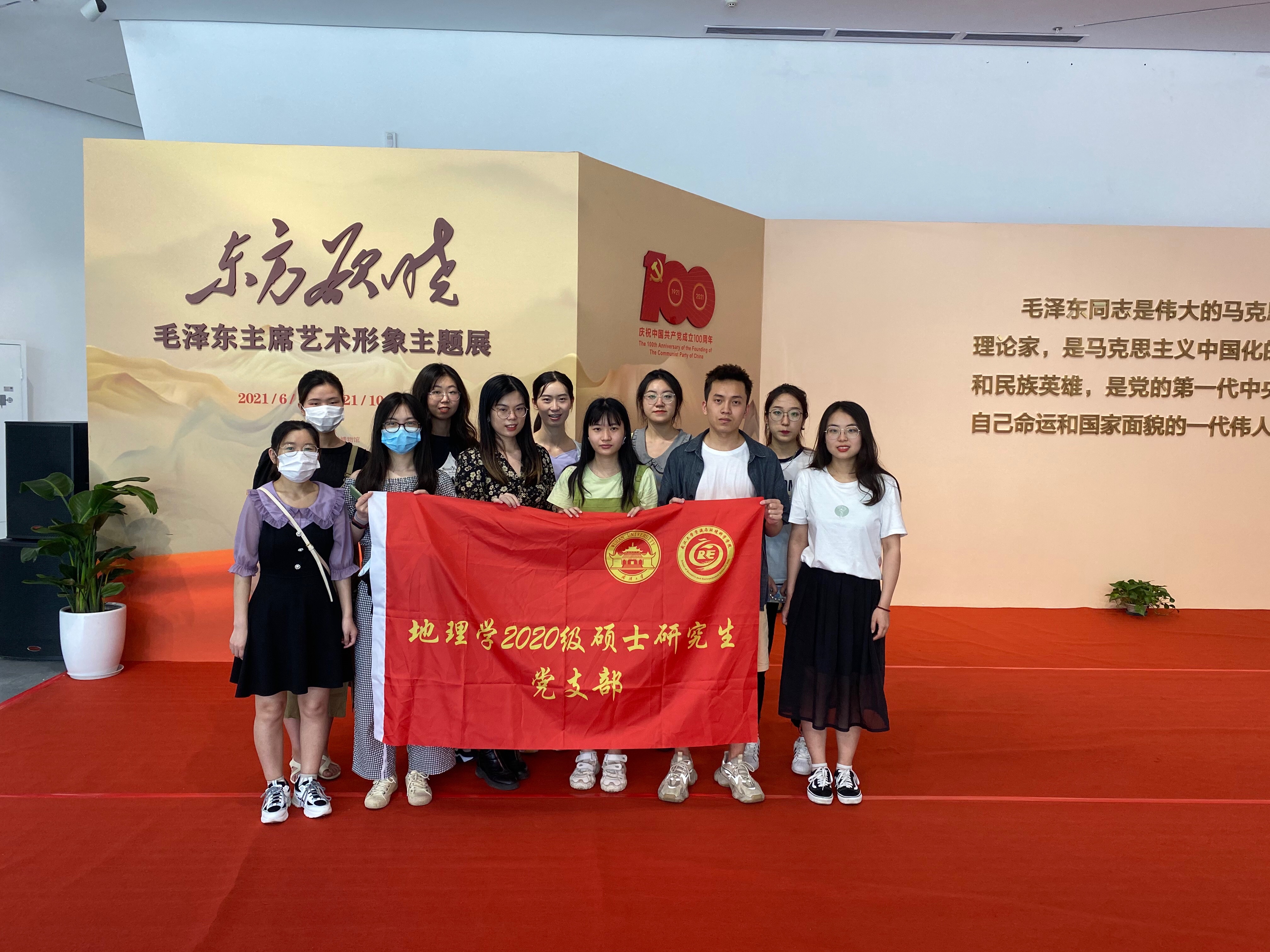 重温英雄情怀,传承先辈初心,毛泽东主席艺术形象既是文化自信的表现,又是民族精神的彰显,还是爱国主义教育的永恒主题。新时代里,毛泽东主席艺术形象不仅弘扬了不忘初心、砥砺前行的中国精神,也凝聚了团结一心、奋发向上的中国力量。在庆祝建党100周年、全党开展党史学习教育之际,为提高学生党员的文化素养、丰富精神文化生活,让党员同志更加深刻地领略共产党人的理想信念与家国情怀,6月28日,地理学2020级硕士研究生党支部开展主题党建活动,组织10名党员参观了毛泽东主席艺术形象主题展,近距离感受毛主席的伟人风采。