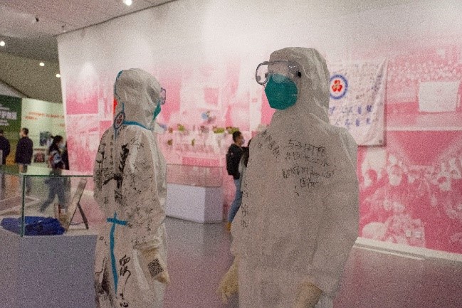 每一面旗帜上的签名、每一件防护服上话语都是他们奋斗时的记录;展柜里的一枚枚勋章、一张张奖状都是对他们无私奉献的肯定,是国家和人民对他们的感激。“在这场同严重疫情的殊死较量中,中国人民和中华民族以敢于斗争、敢于胜利的大无畏气概,铸就了生命至上、举国同心、舍生忘死、尊重科学、命运与共的伟大抗疫精神。”
